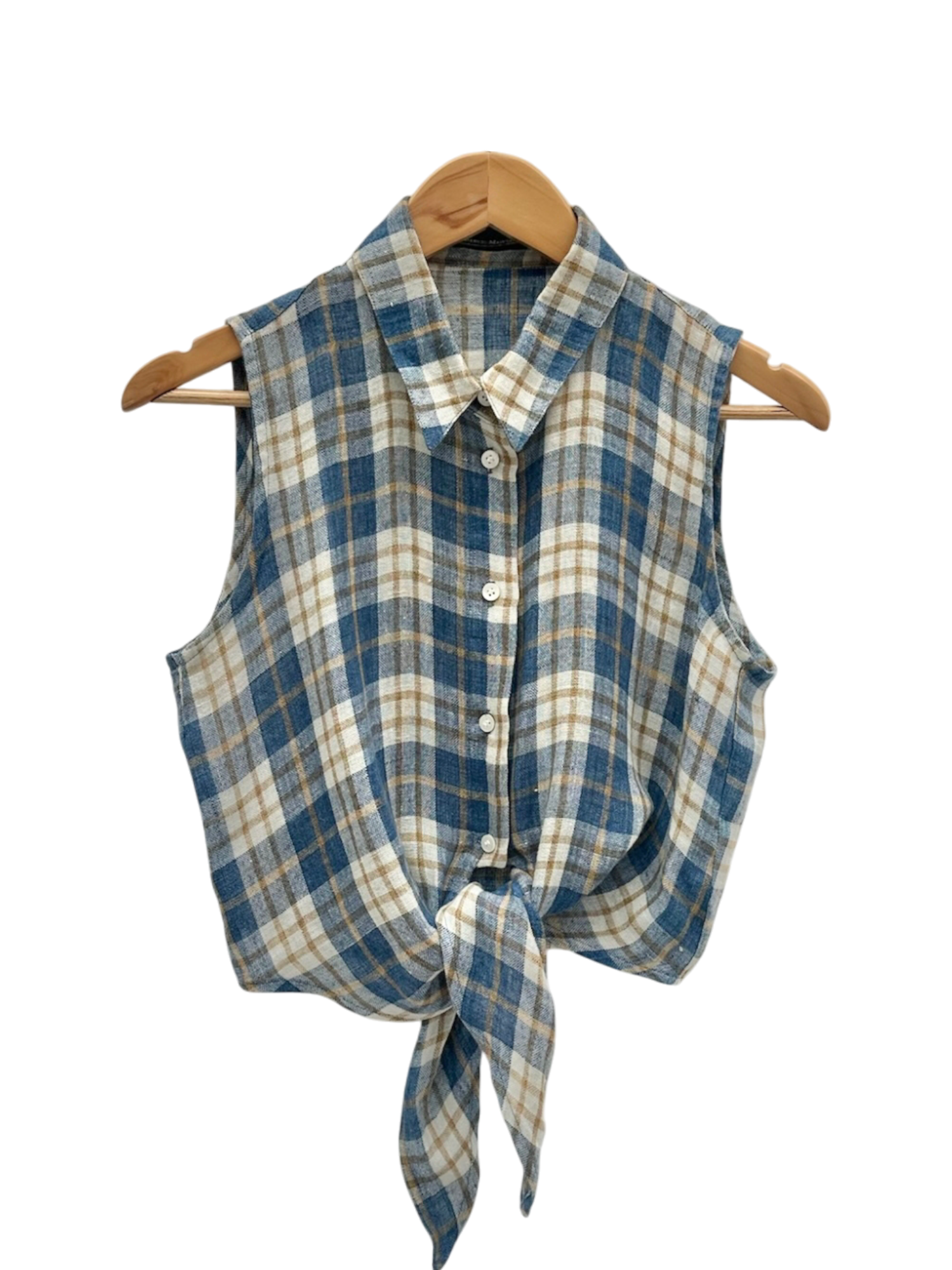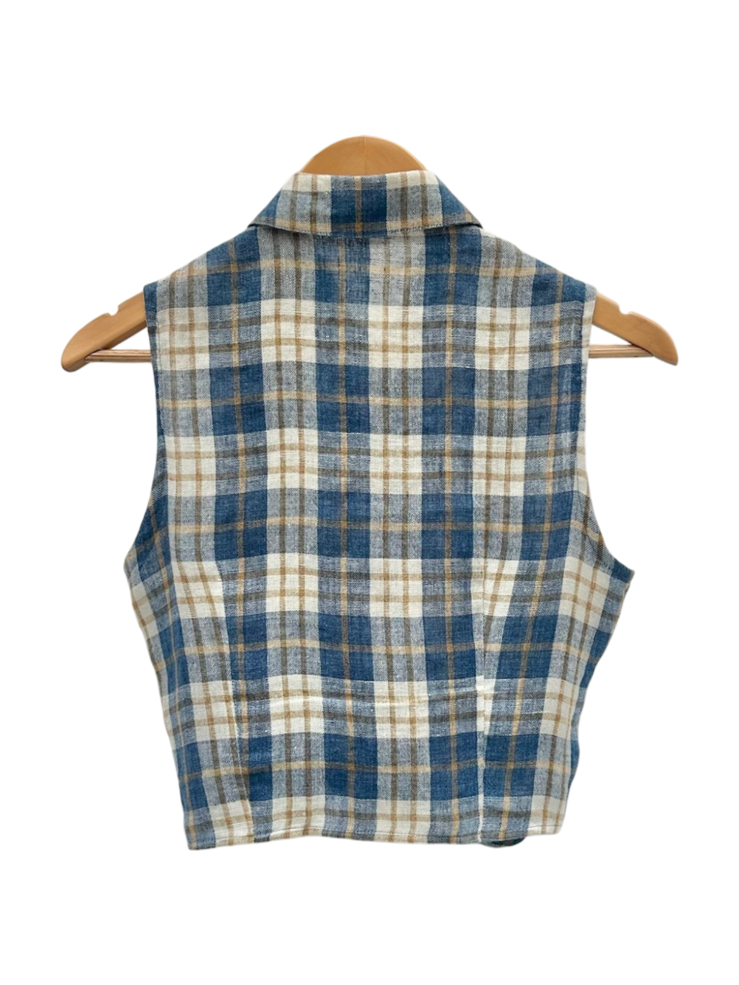 Vintage 90s Blue Plaid Tie-Front Blouse (S/M)