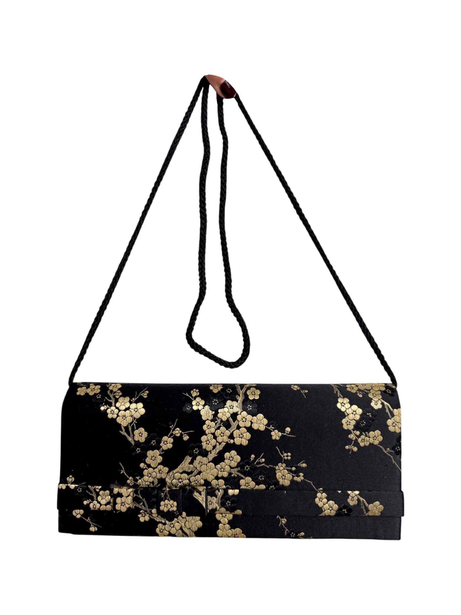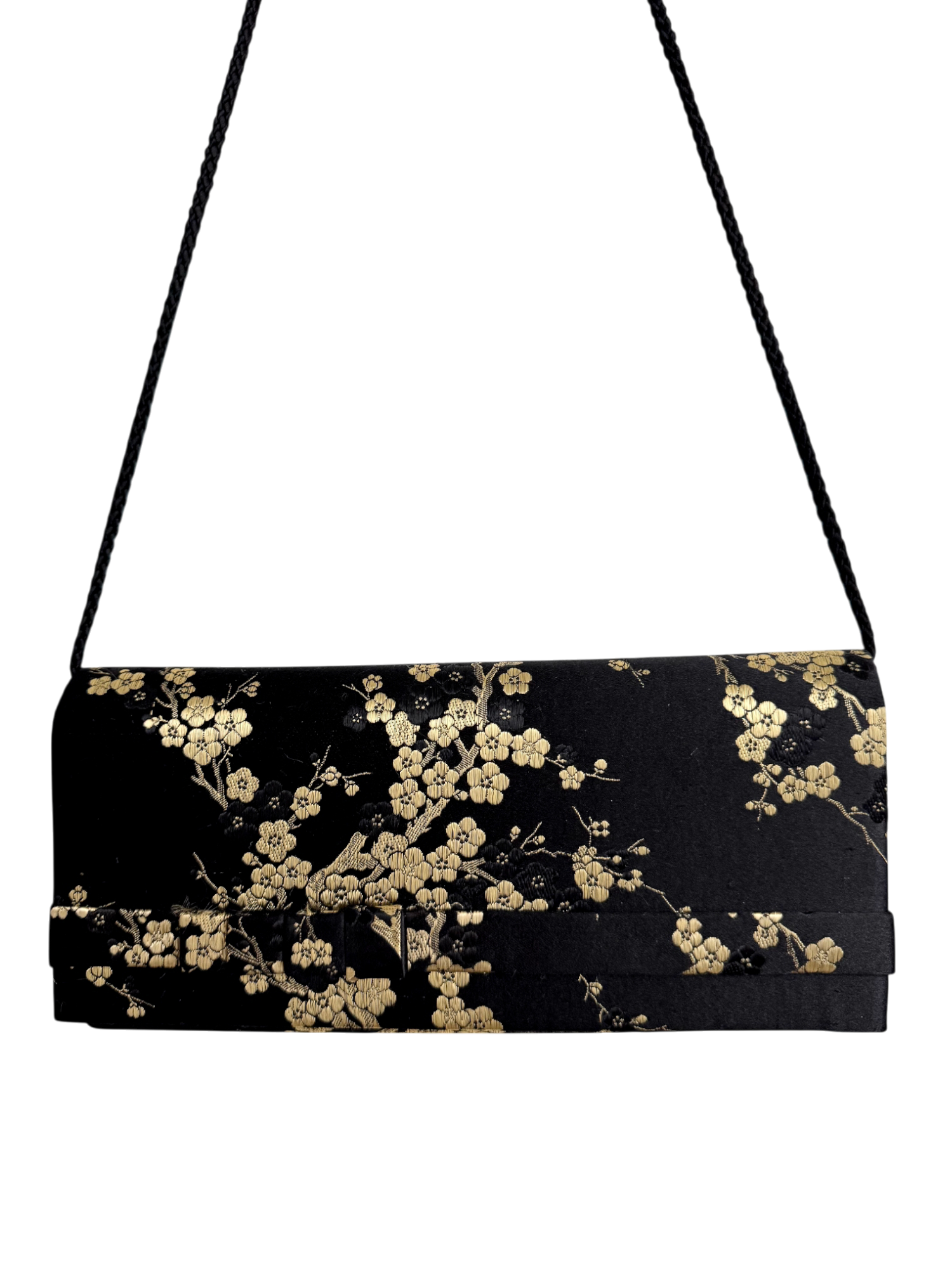 Vintage 90s Black & Gold Cherry Blossom Clutch