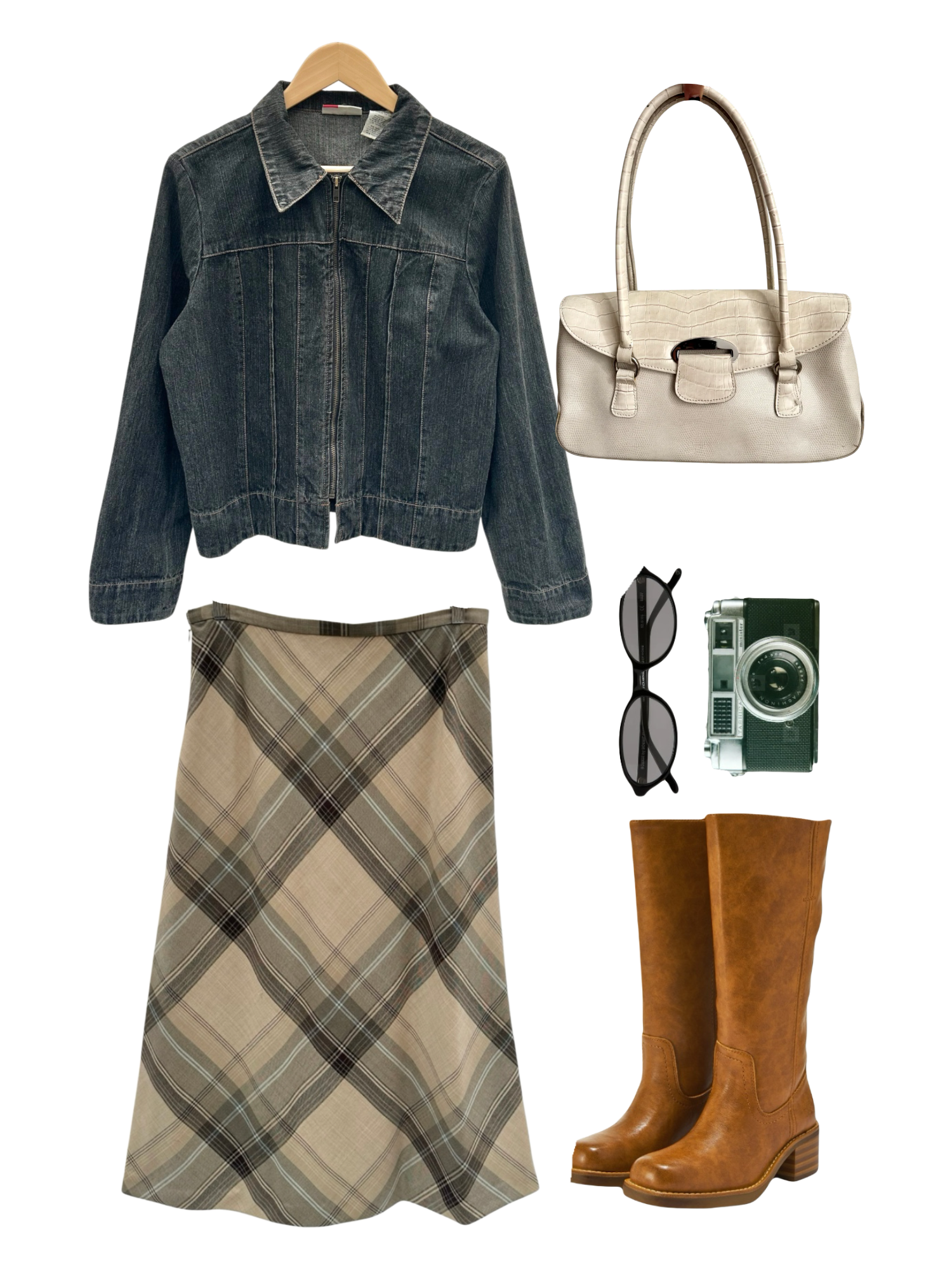 Vintage 90s Checkered Tie Pleated Blouse (S)