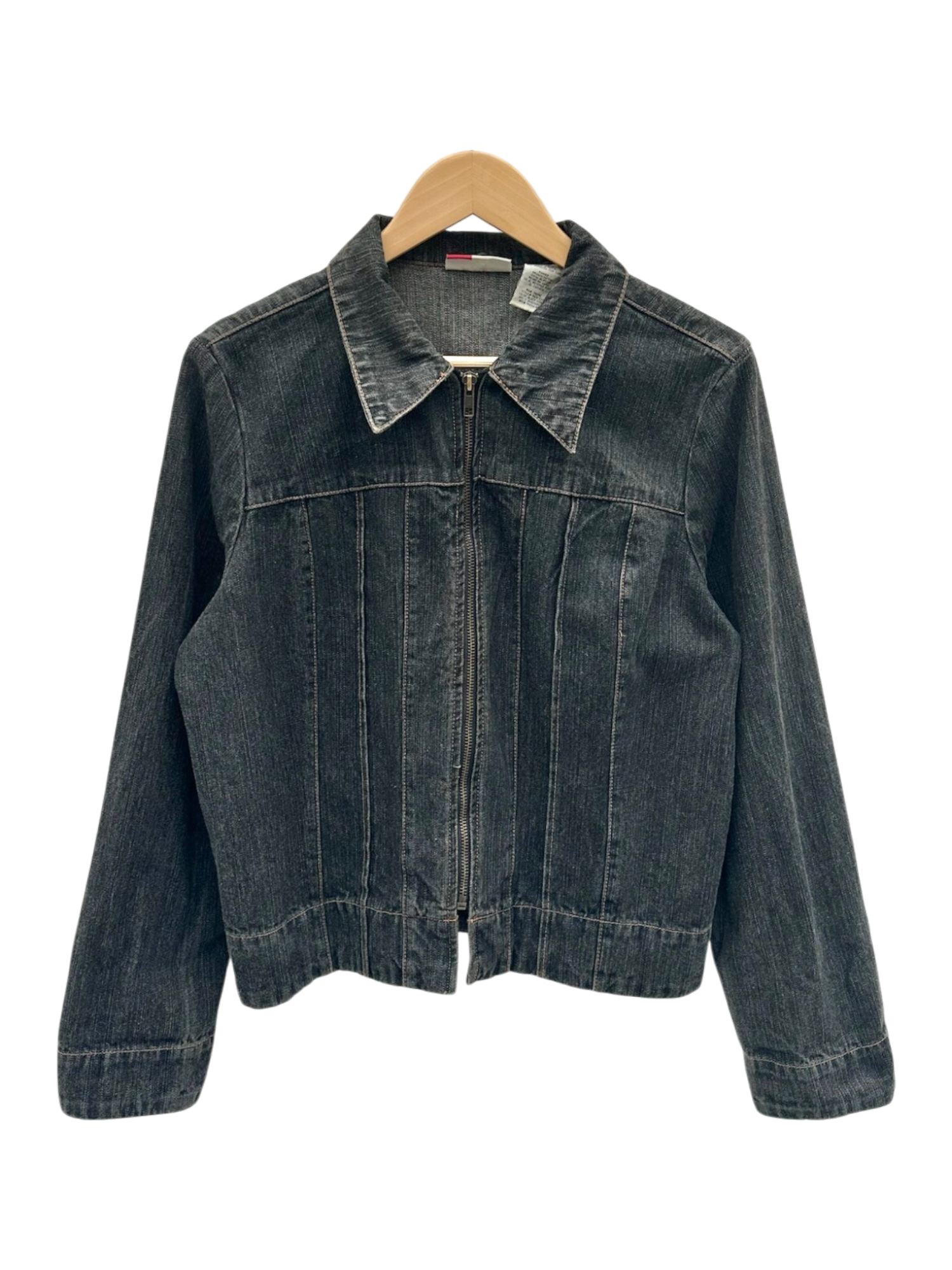 Vintage 90s Charcoal Denim Zip Light Jacket (L)