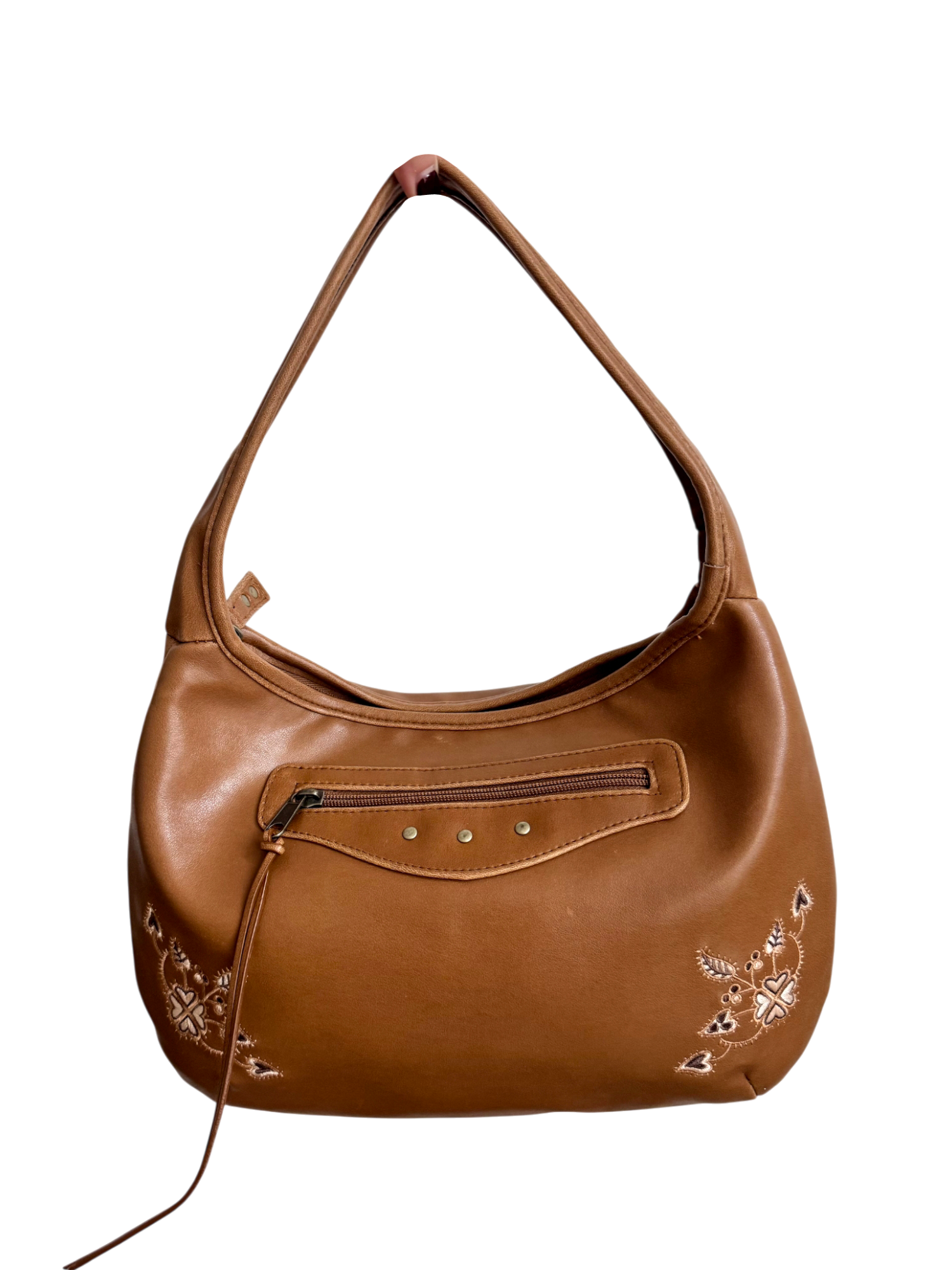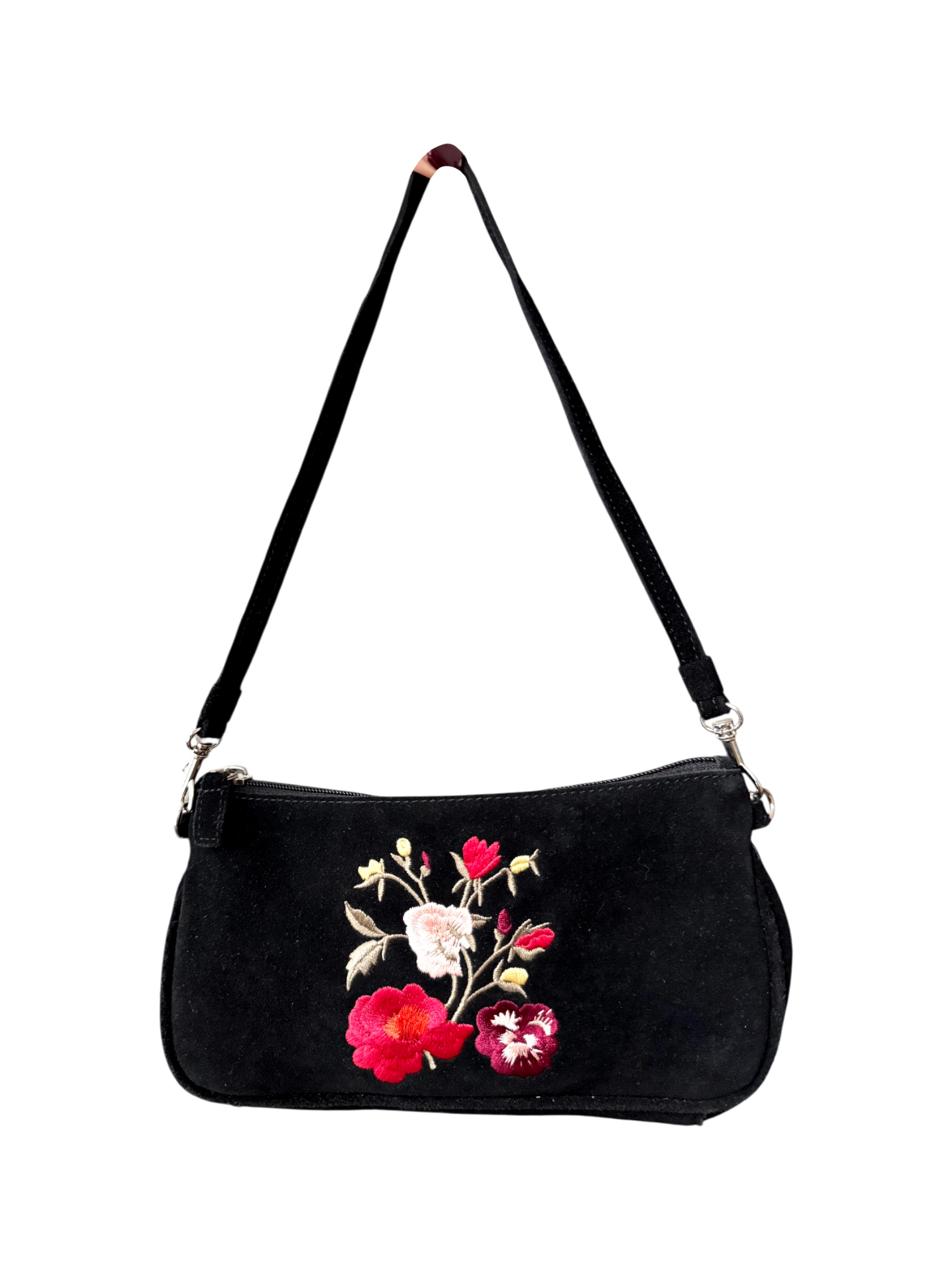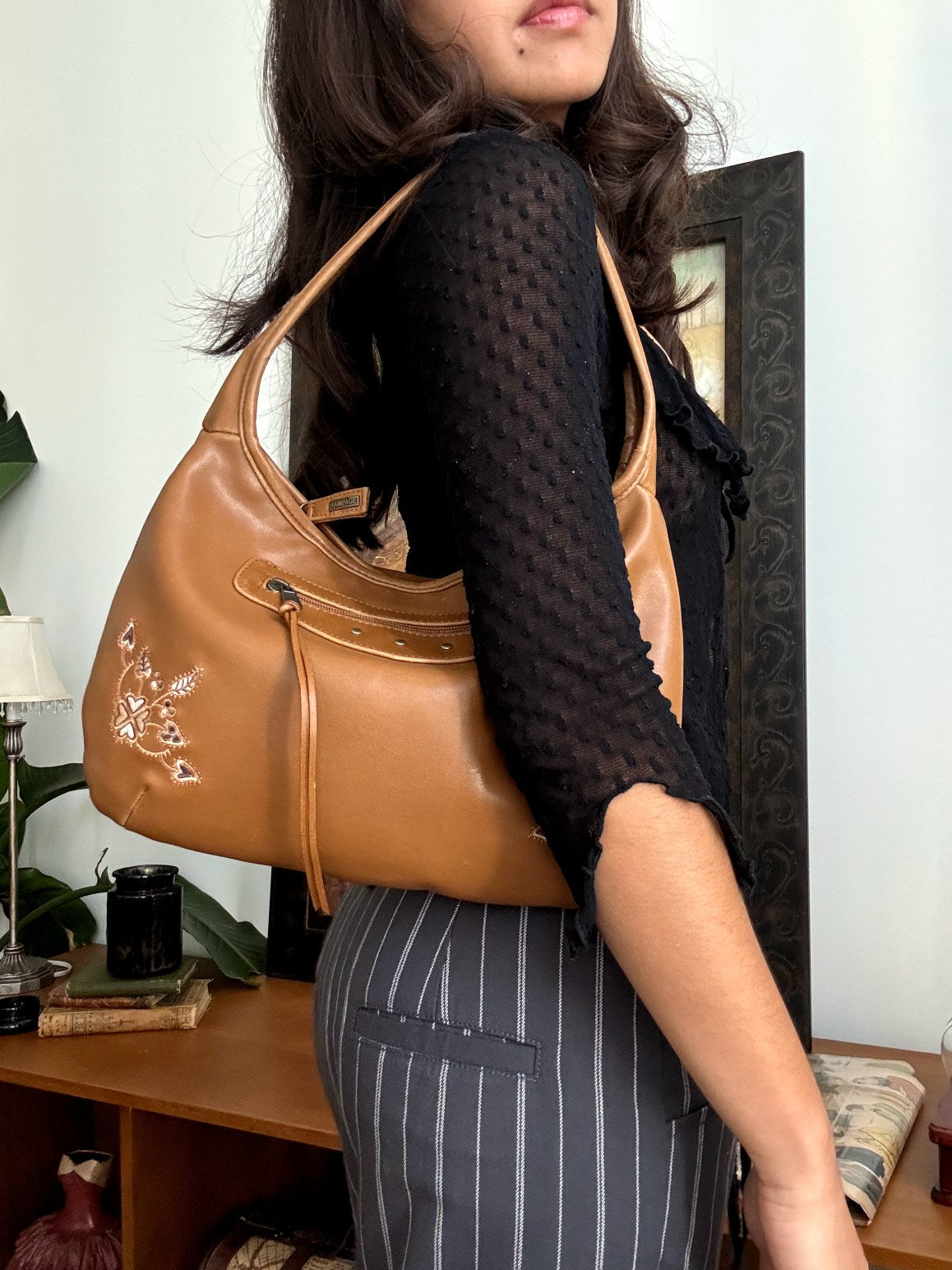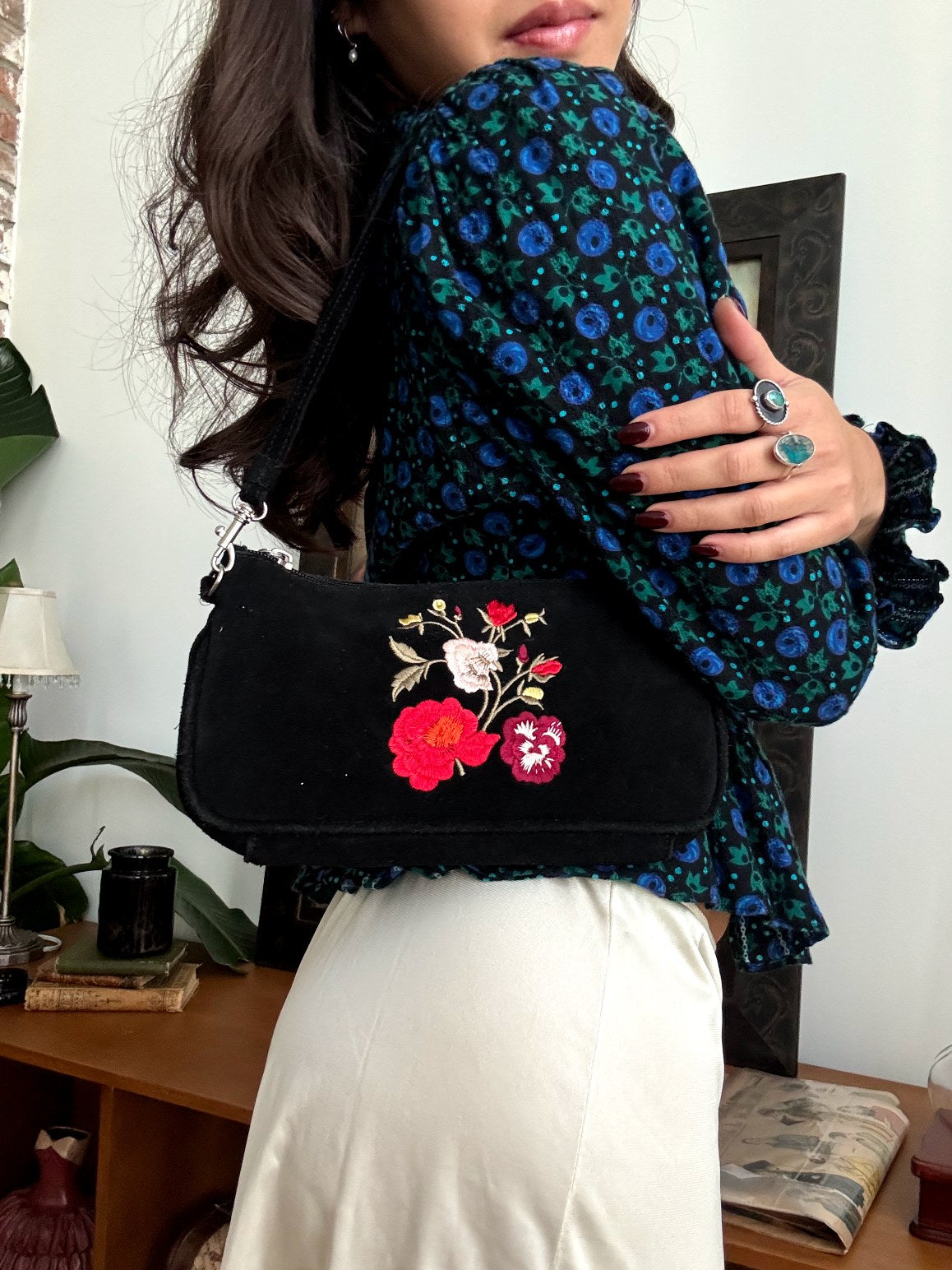 Vintage 90s Charming Floral Embroidered Leather Purse