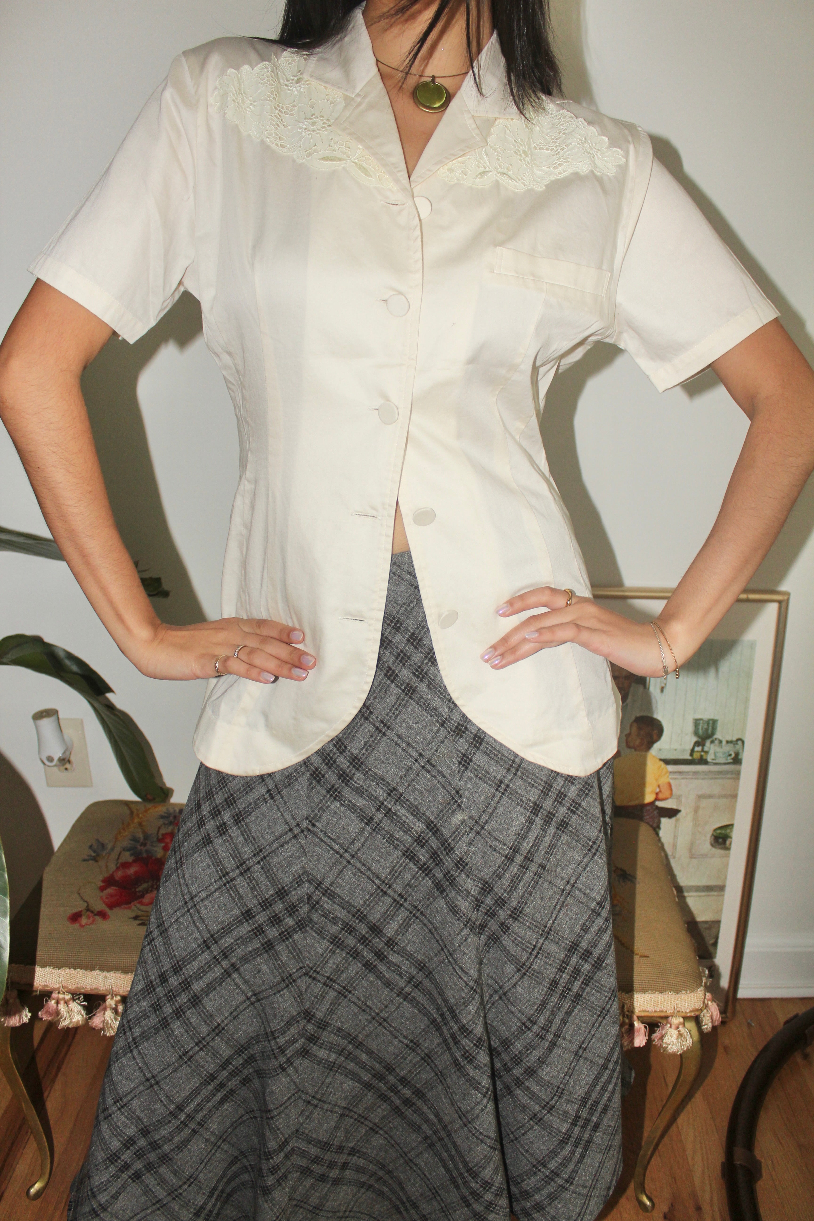 Vintage 90s Cream Lace-Collar Poet Blouse