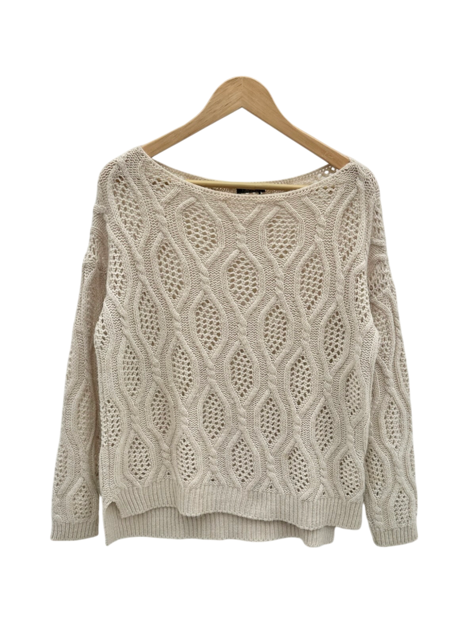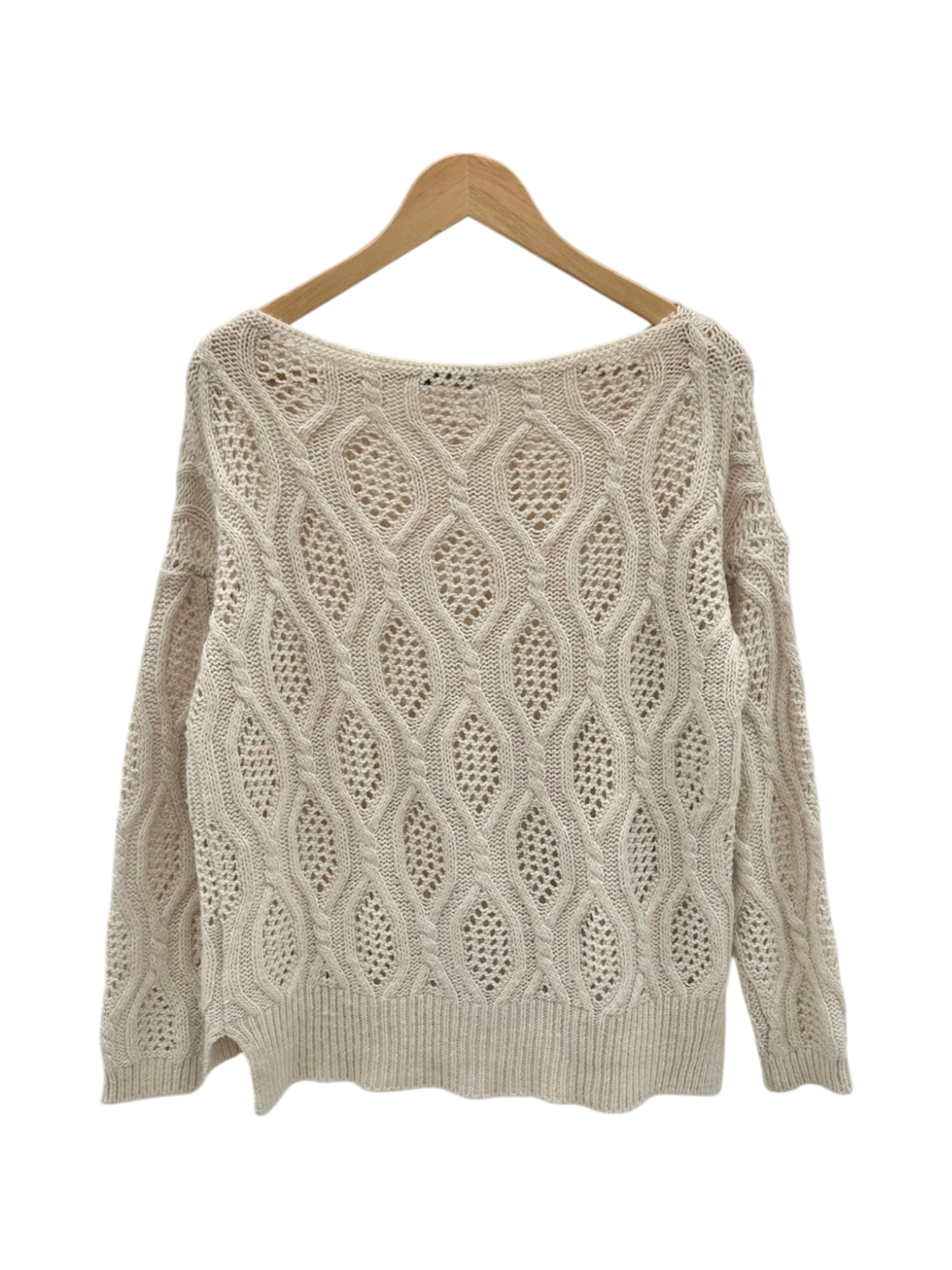 Vintage 90s Cream Open-Weave Cable Sweater (L)