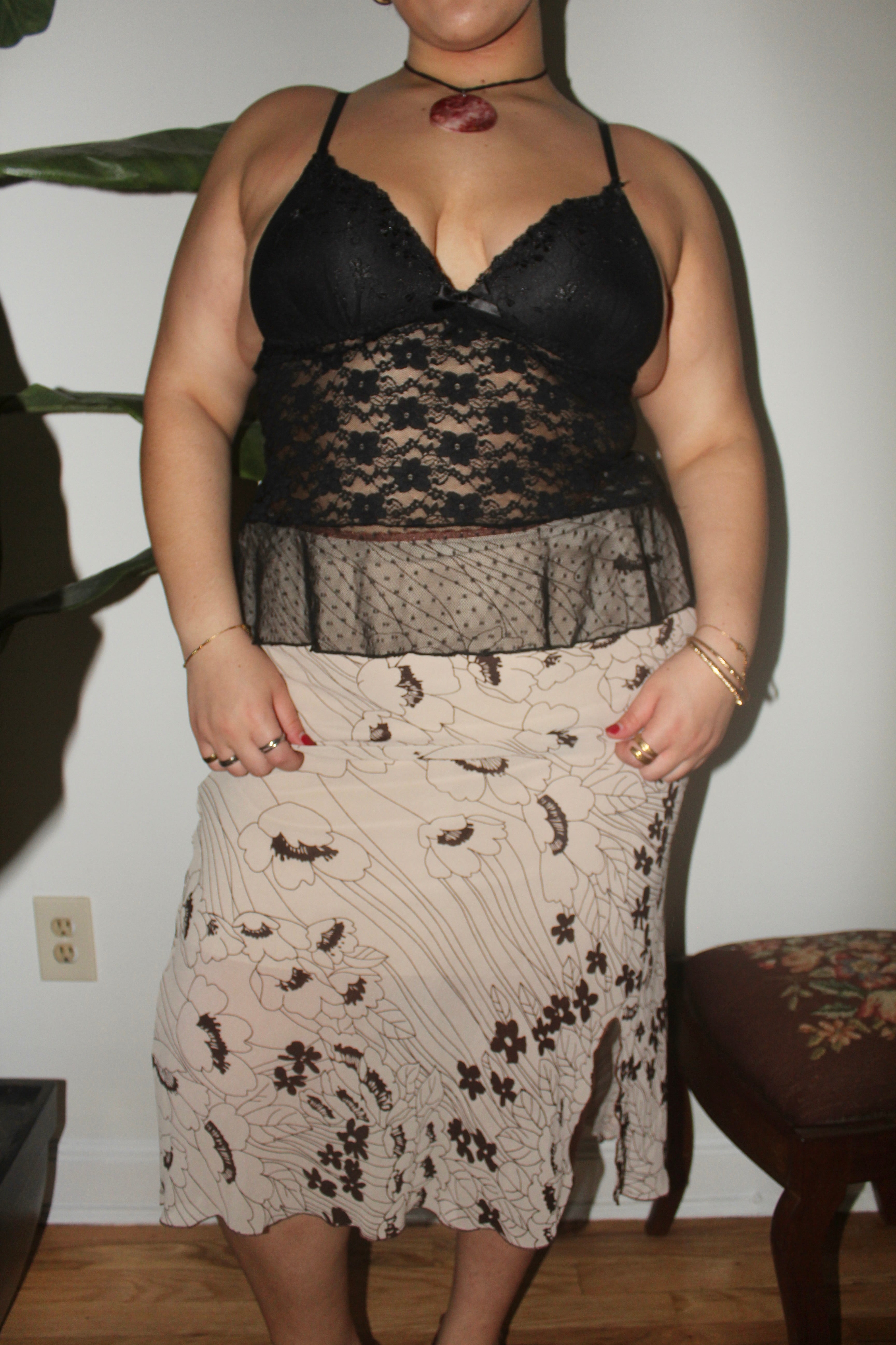 Vintage 90s Floral Slinky Midi Skirt (S)