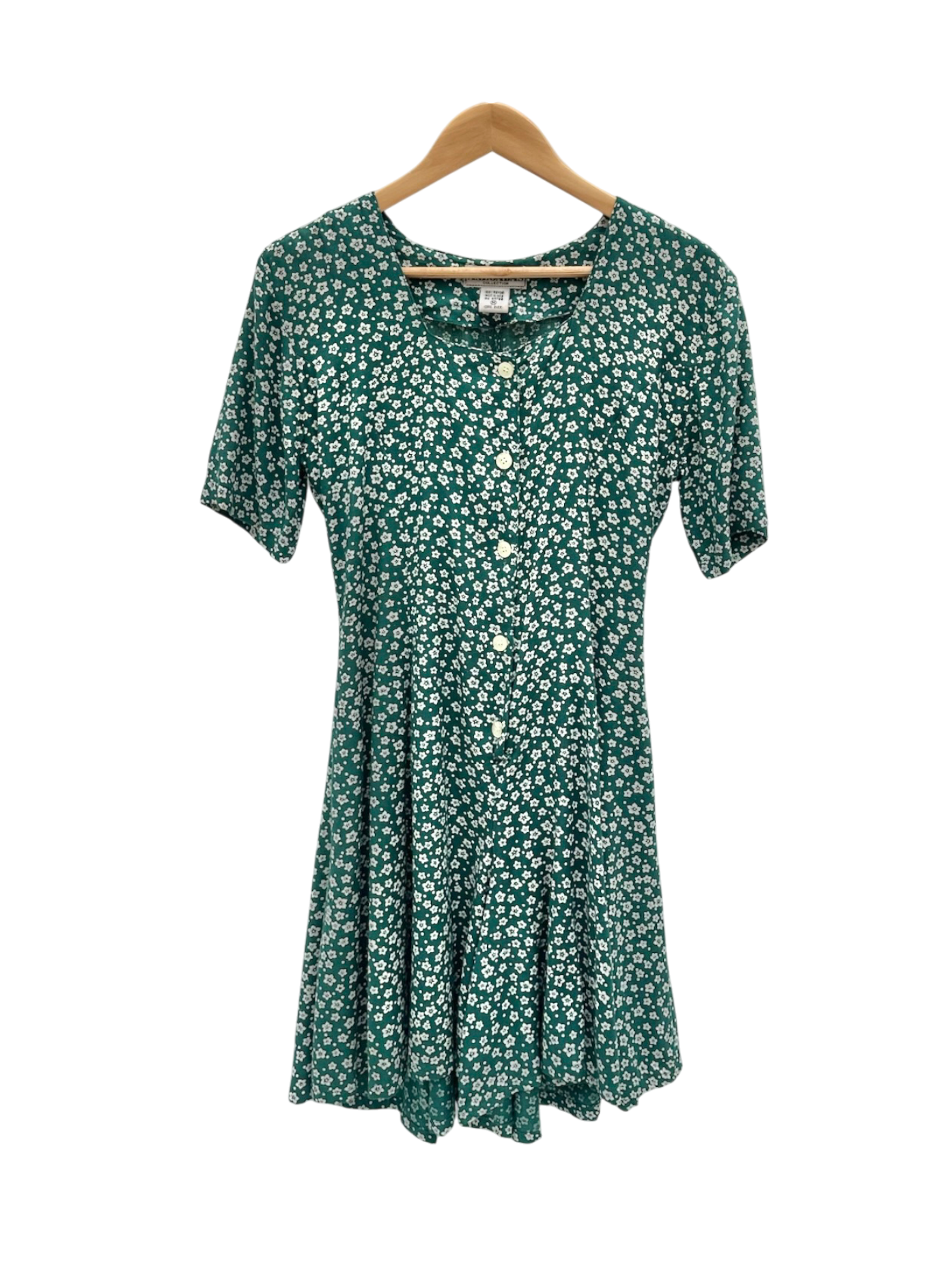 Vintage 90s Green Ditsy Button-Up Mini Romper