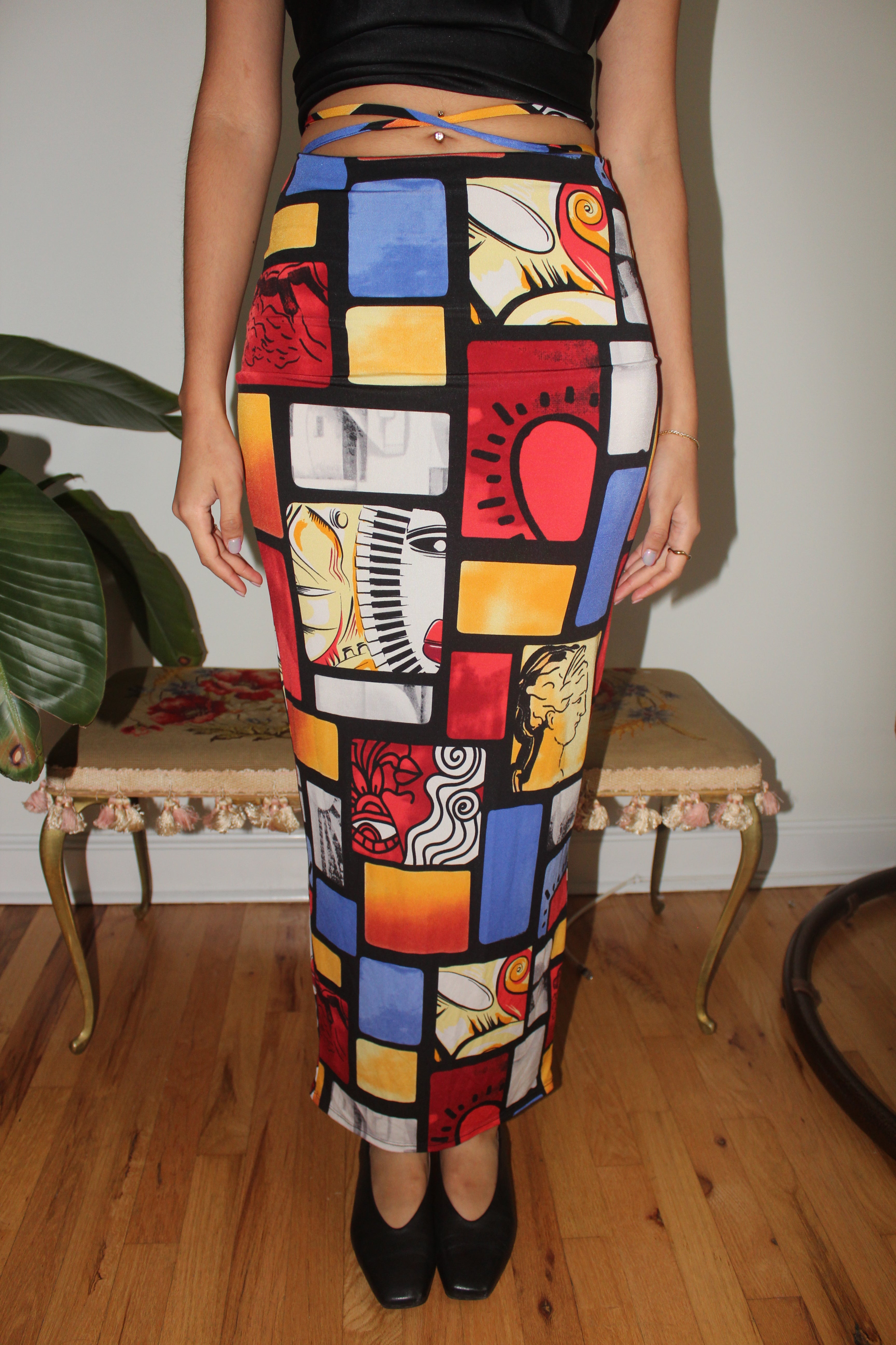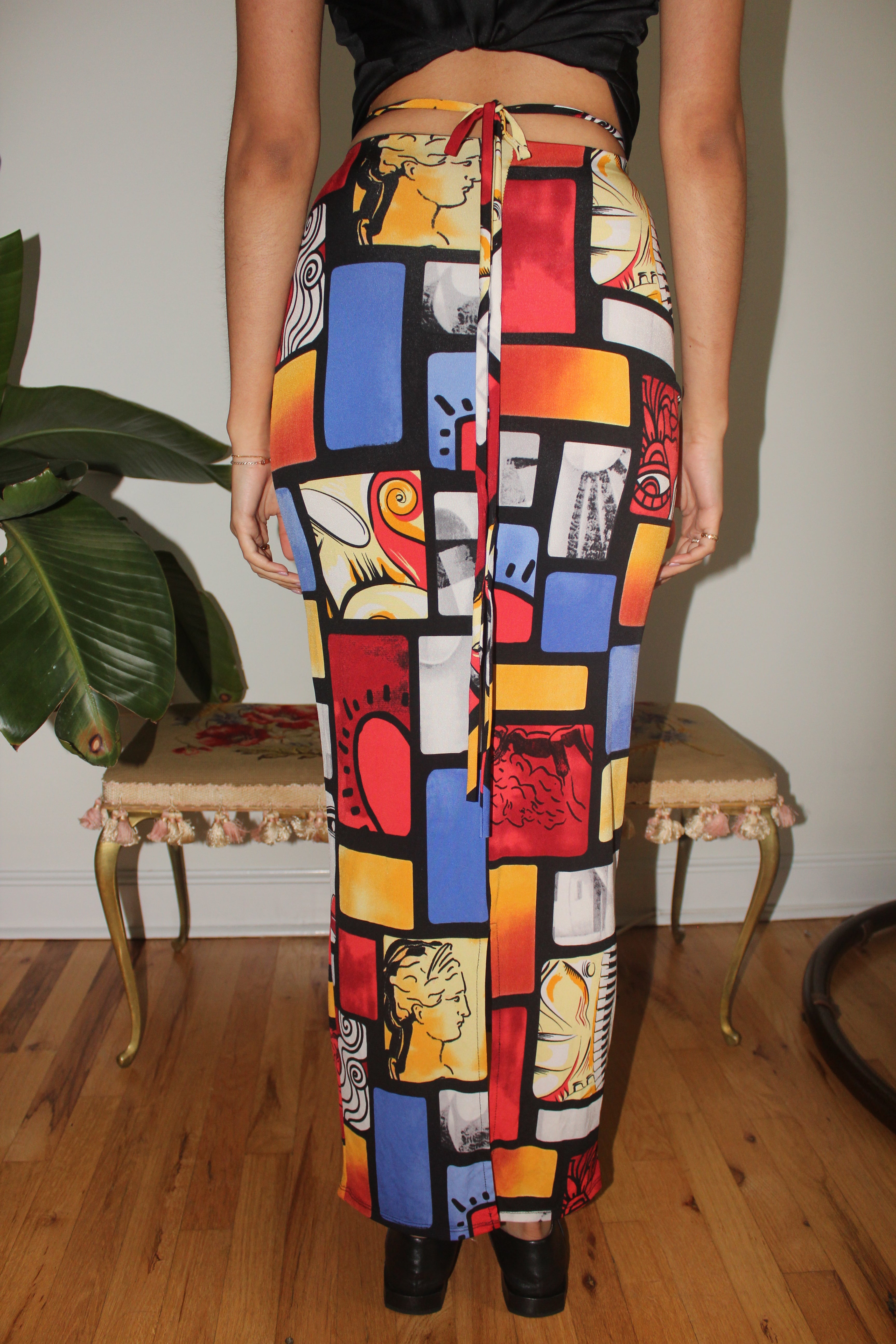 Vintage 90s Pop Art Knit Maxi Skirt (XS)