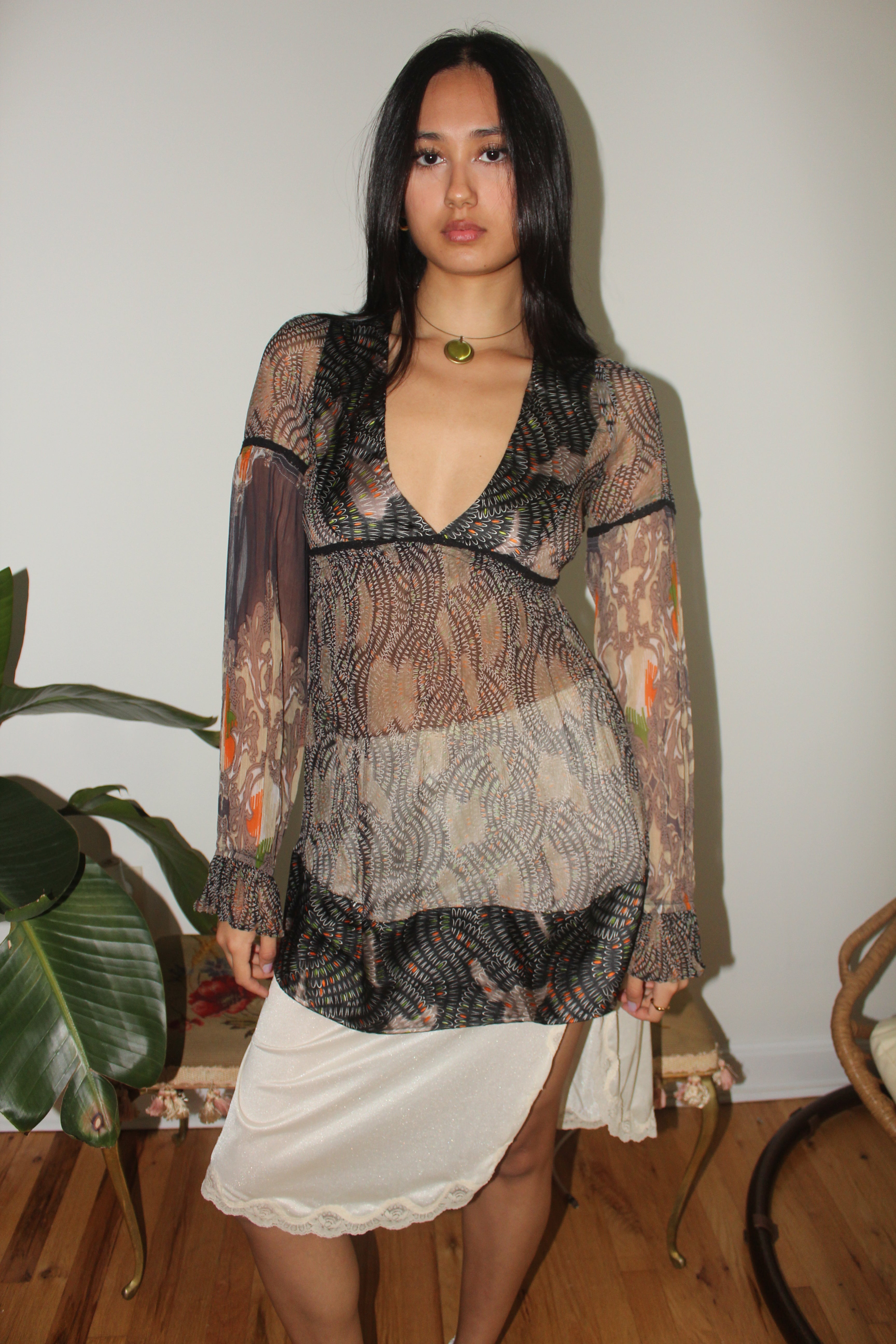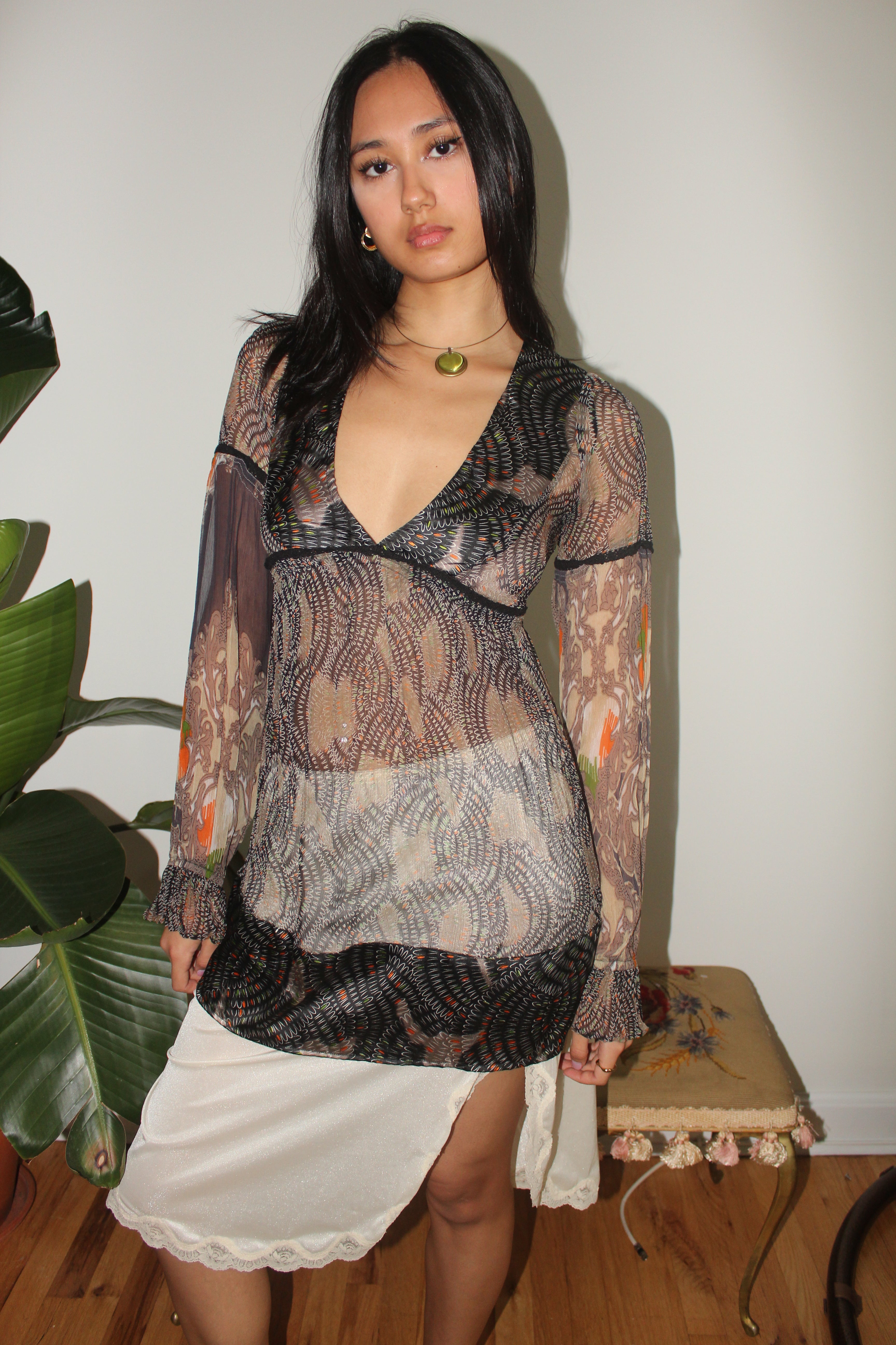 Vintage 2000s Sheer Printed Boho Blouse (S/M)