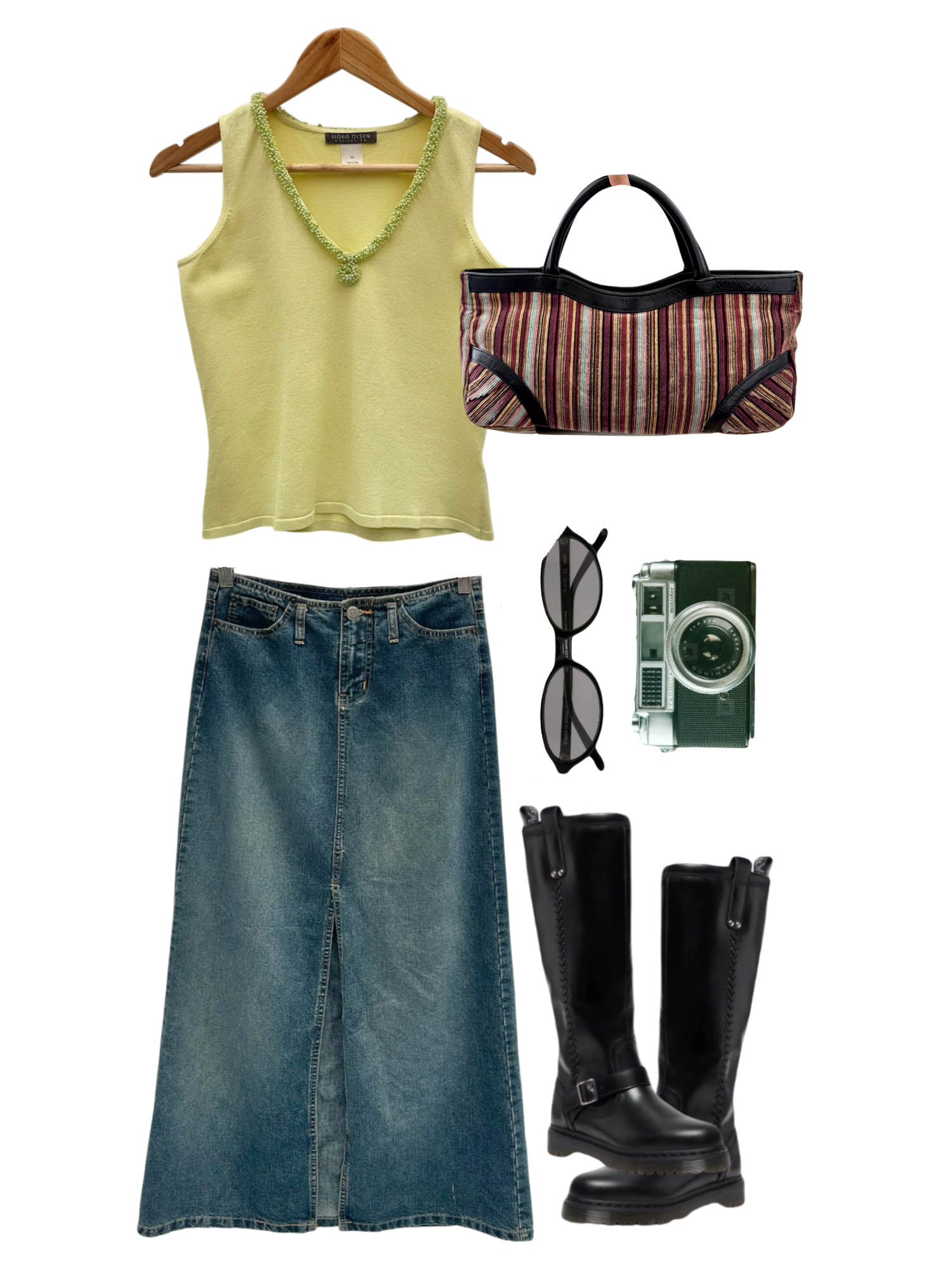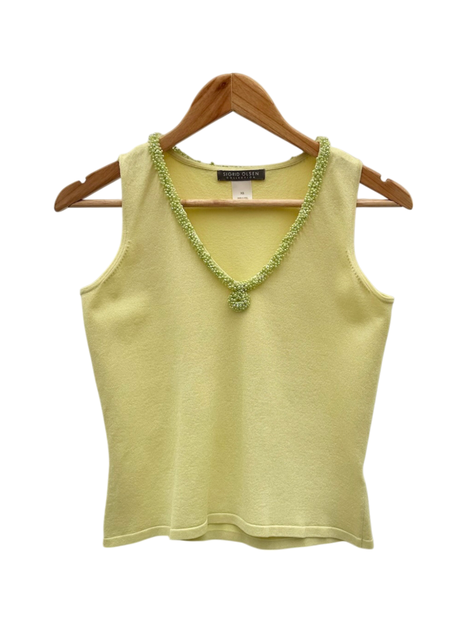 Vintage 2000s Lemon Knit Tank with Beaded Trim (S)