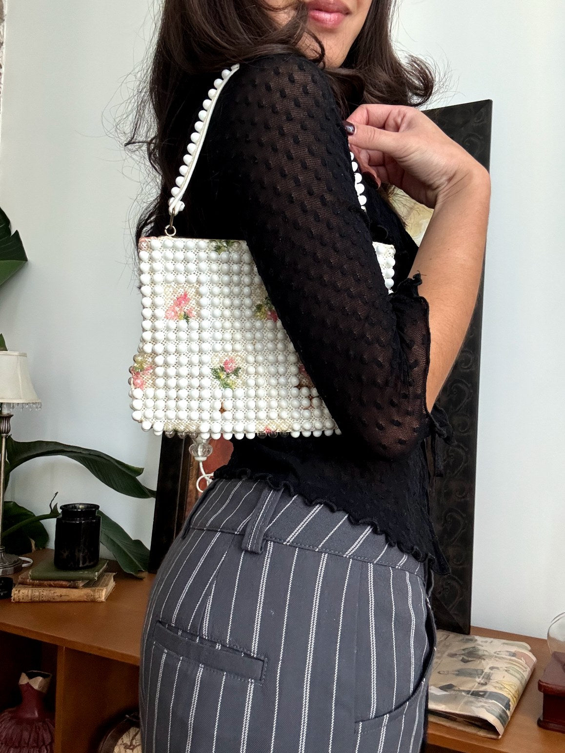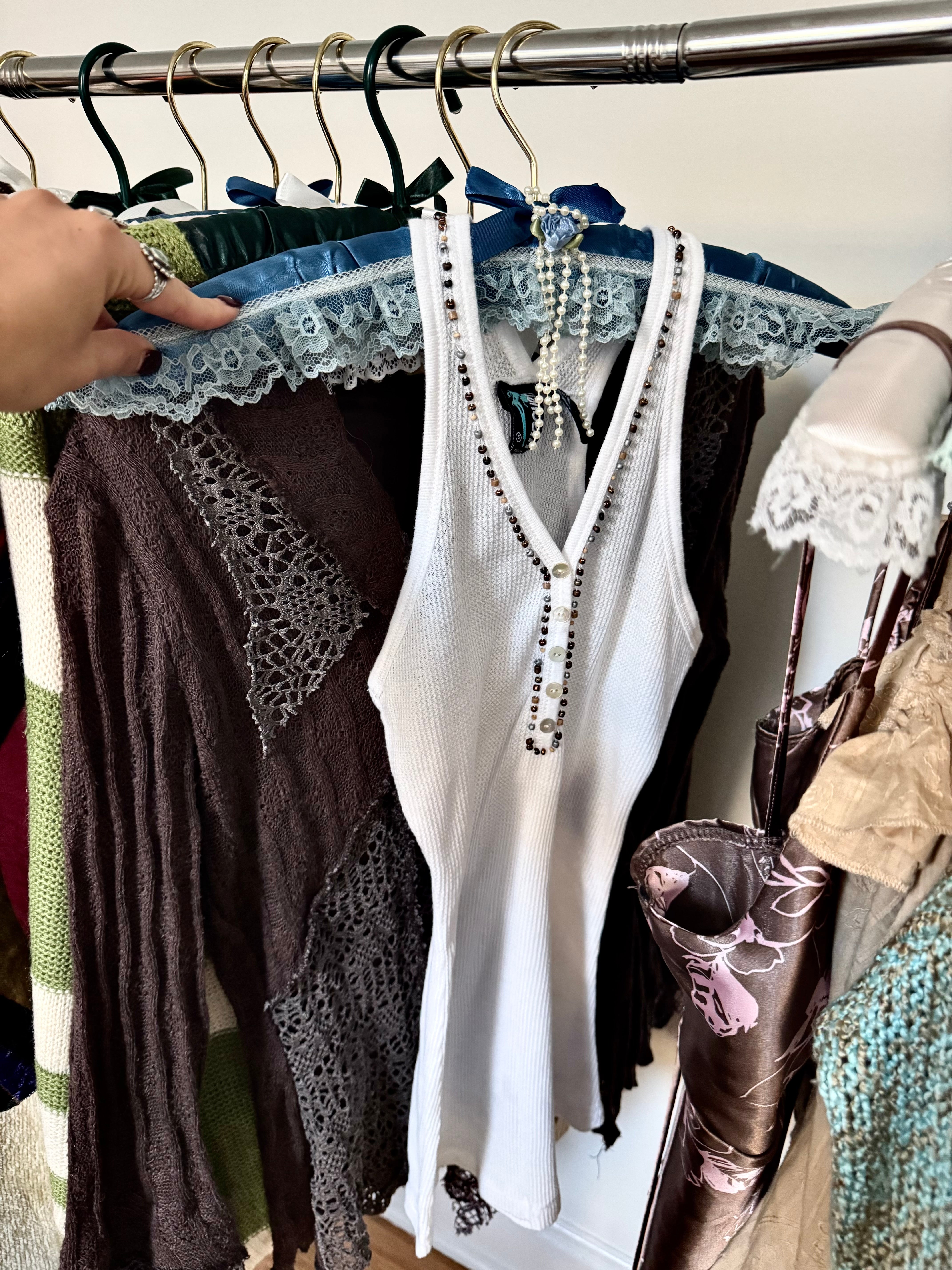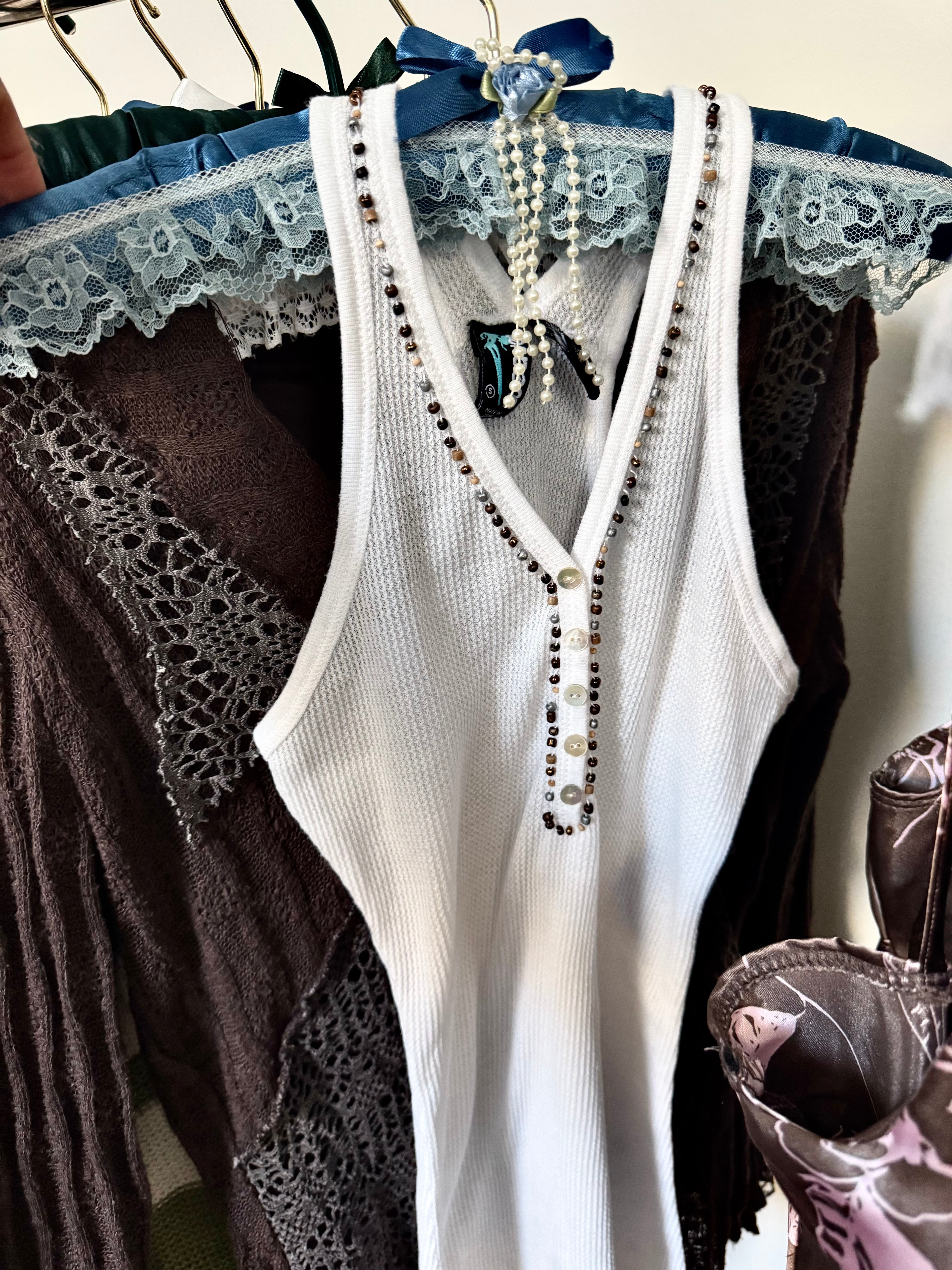 Vintage 2000s Cream Beaded Rosette Tank (M)