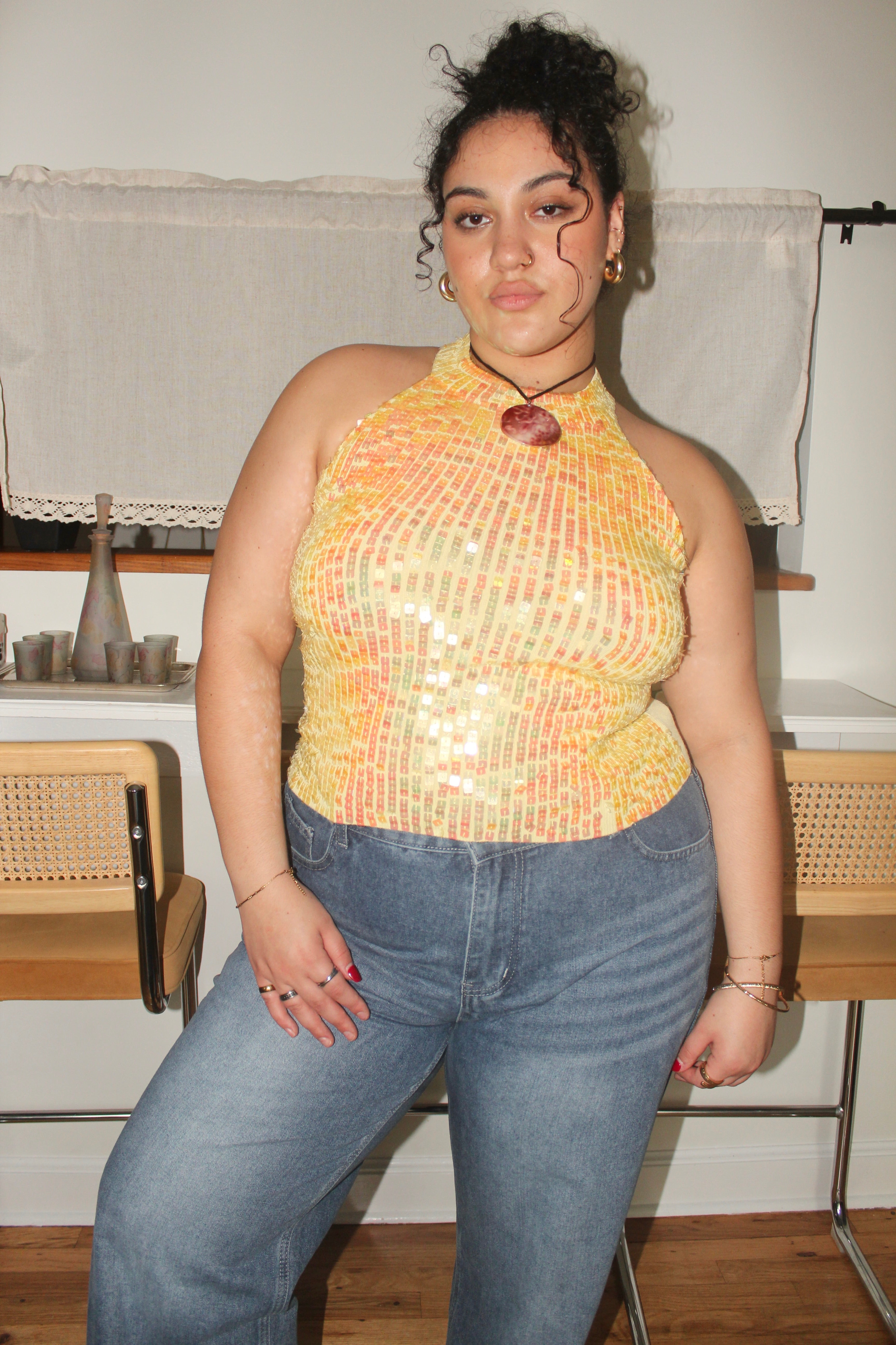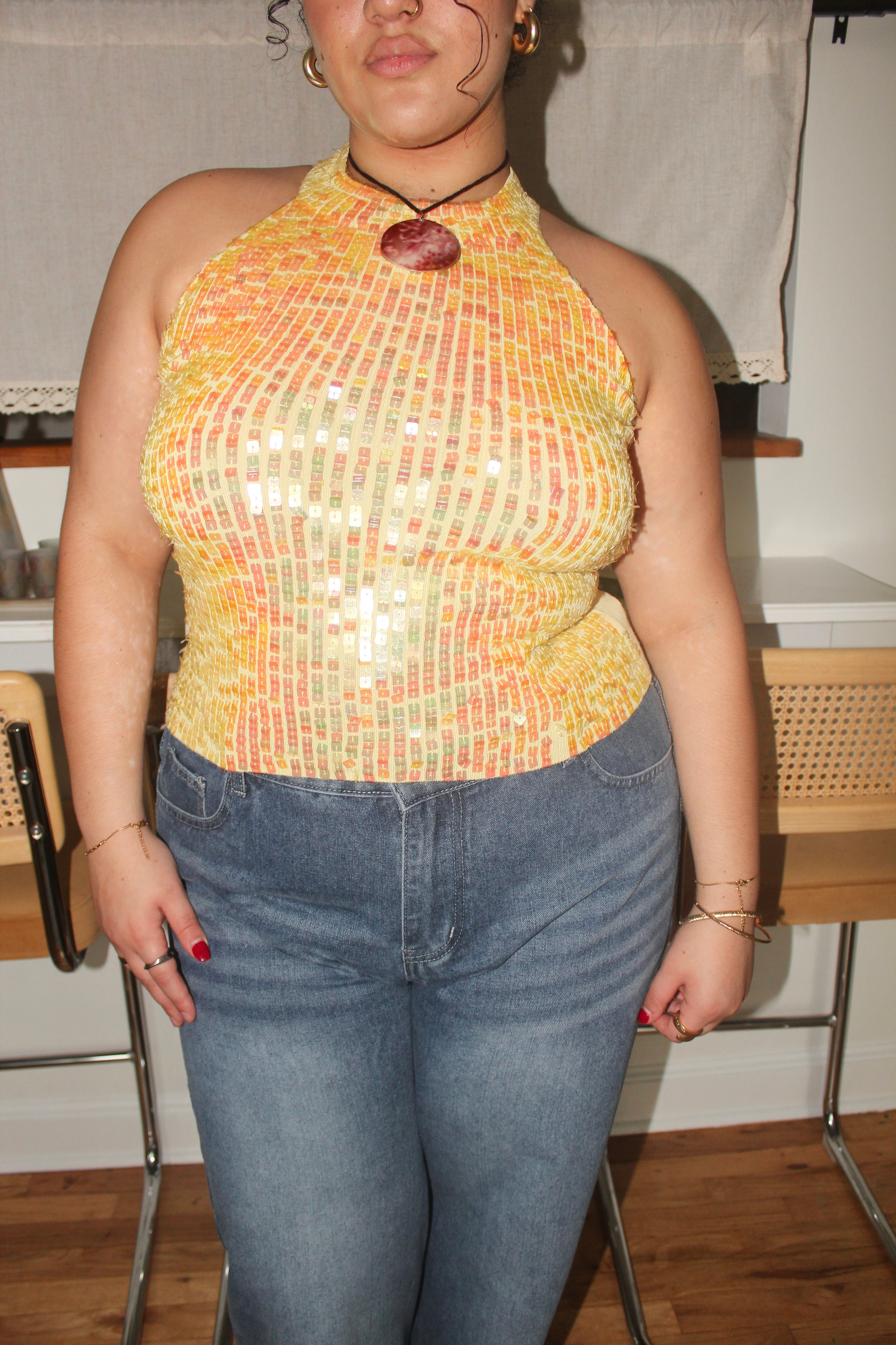 Vintage 2000s Citrus Sequin Halter Top (L)