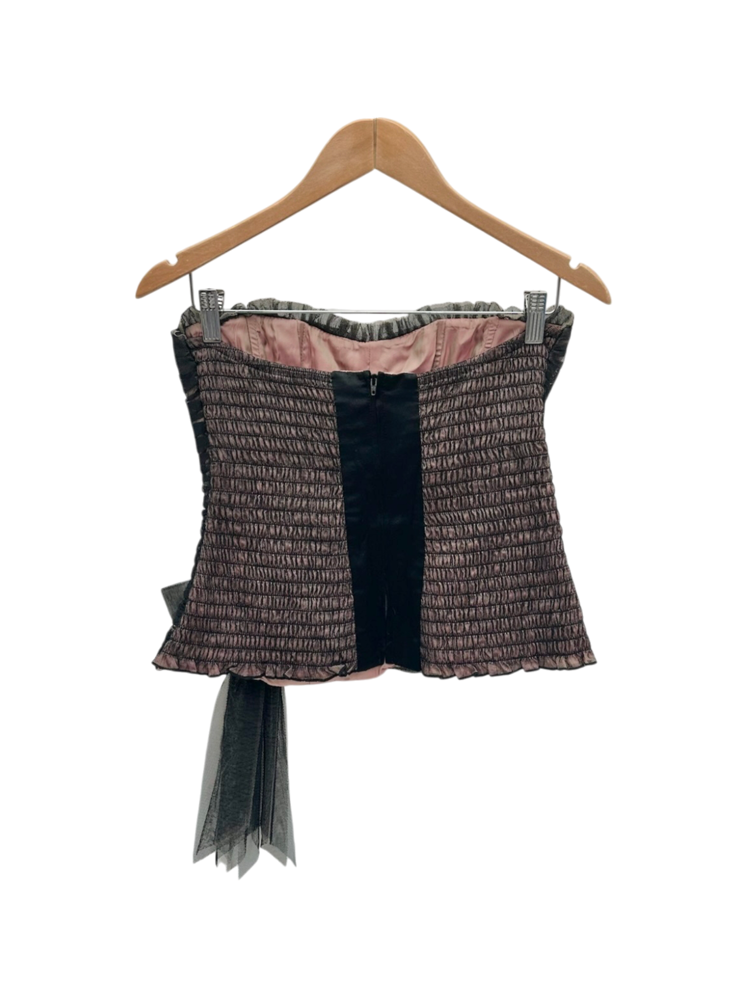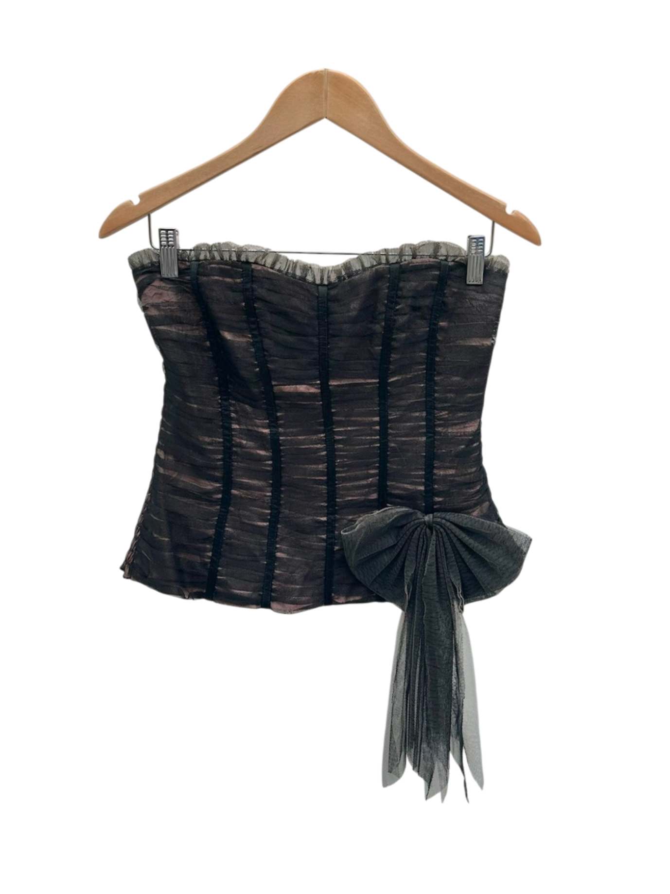 Vintage 2000s Black Mesh Corset Top with Bow (M)