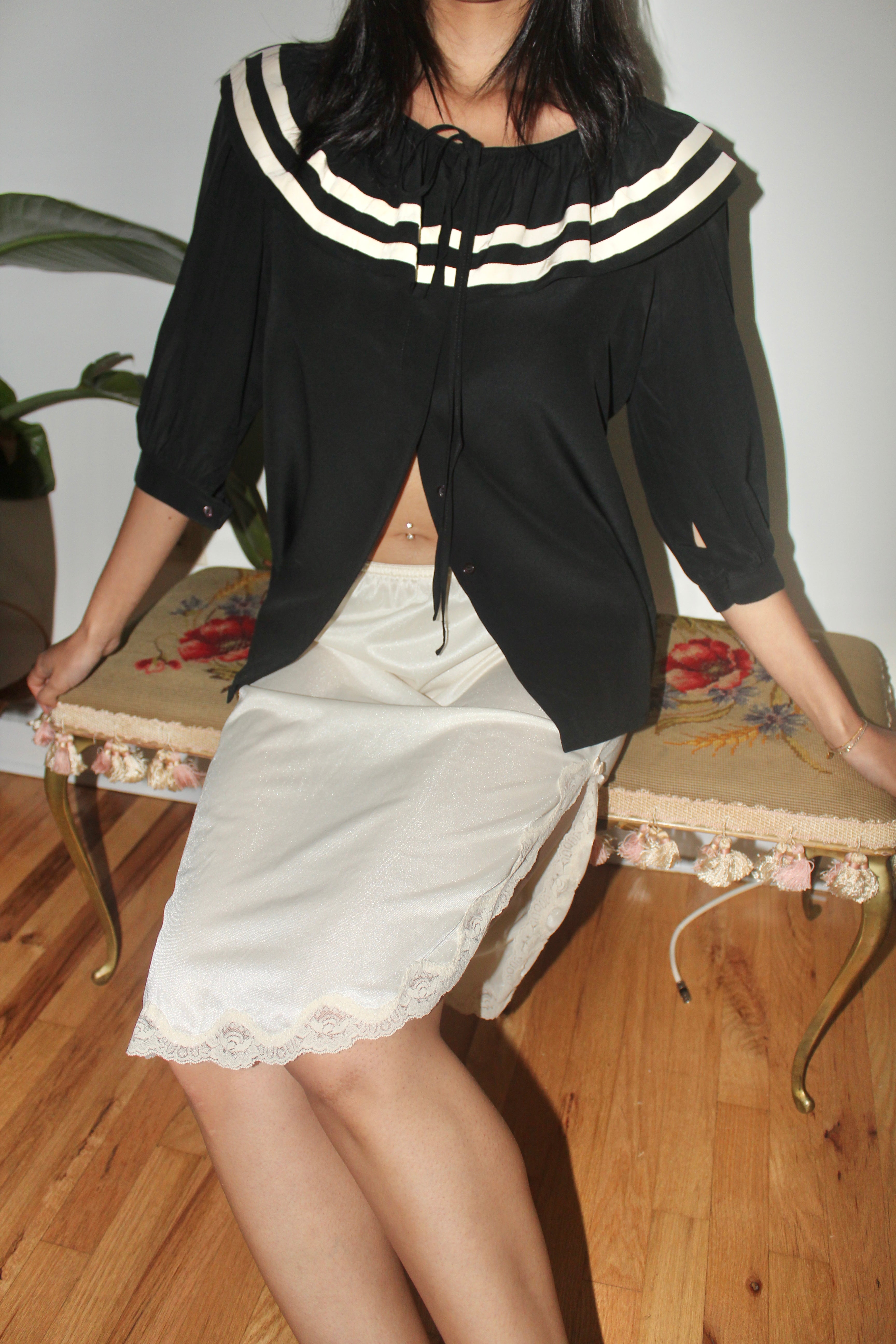 Vintage 80s Black Sailor Collar Blouse (M)