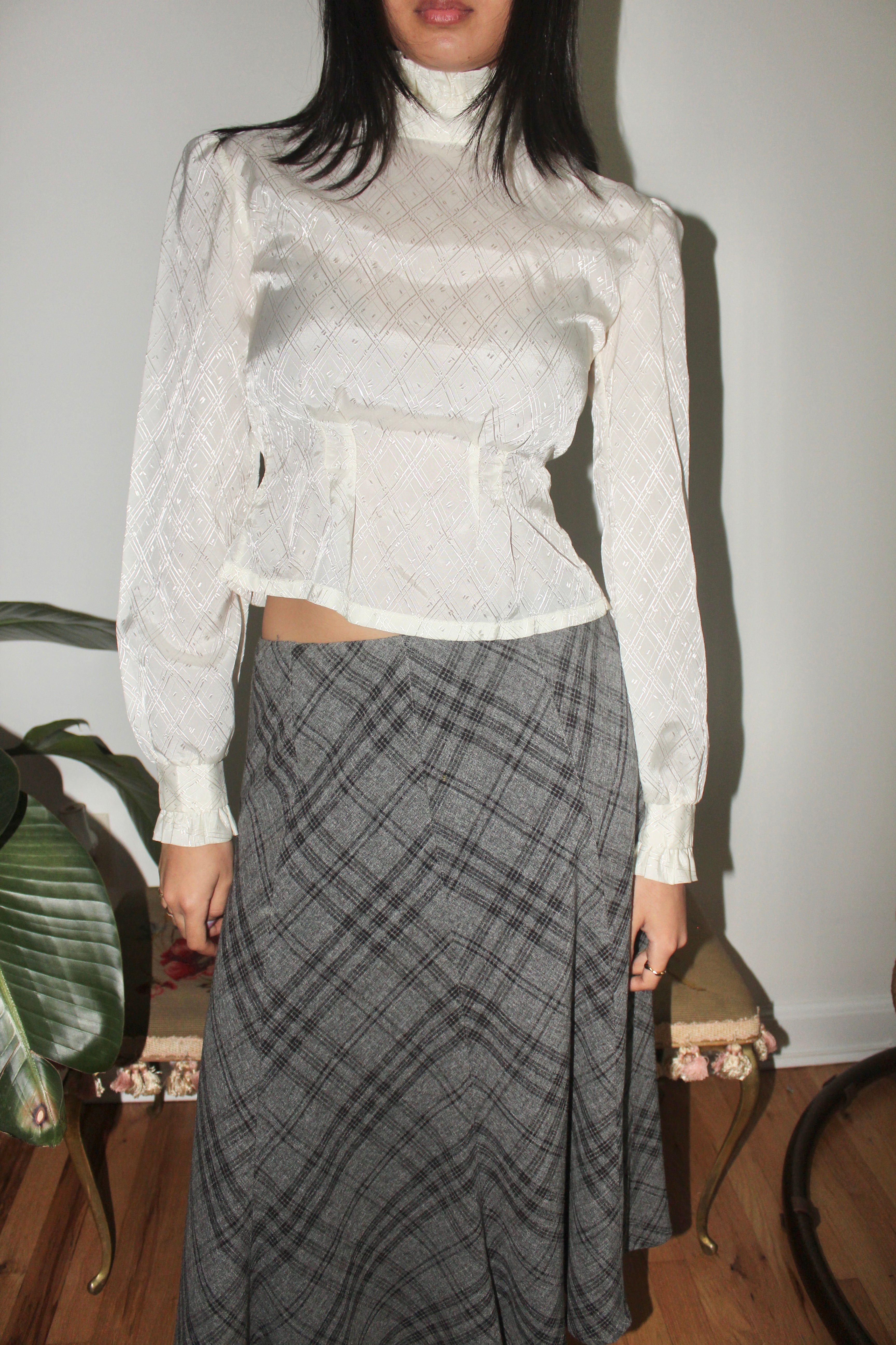 Vintage 70s High Neck Ivory Poet Blouse (S)
