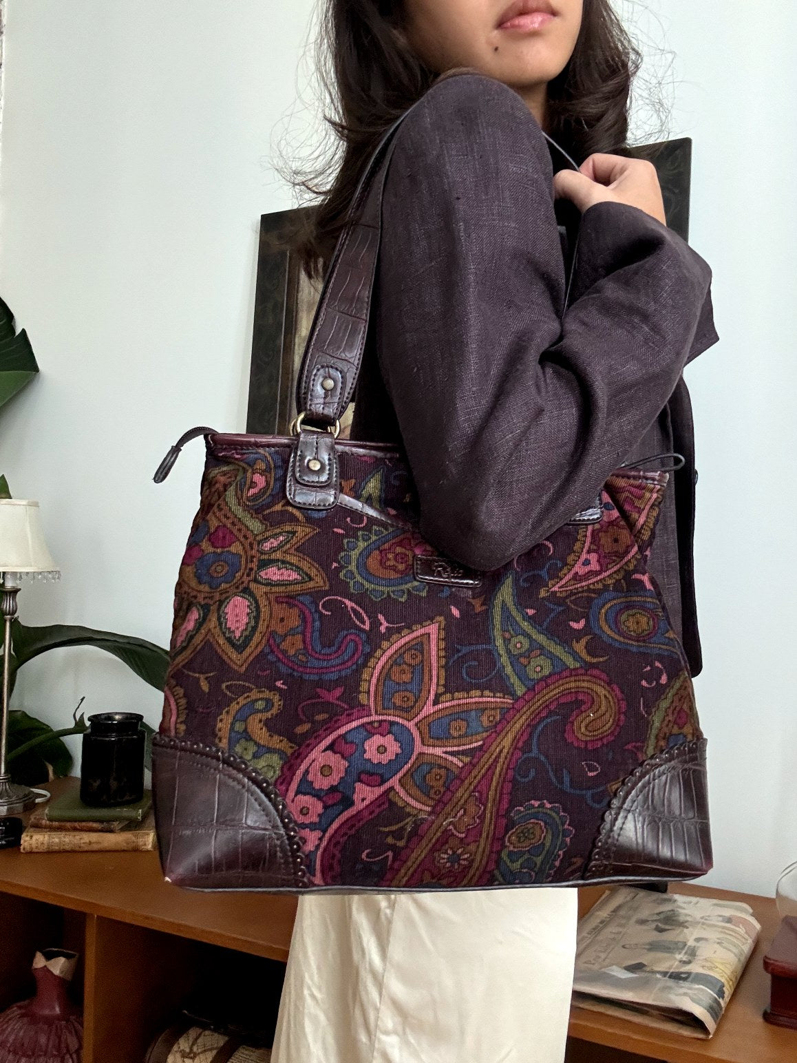 Vintage 70s Paisley Corduroy Shoulder Tote