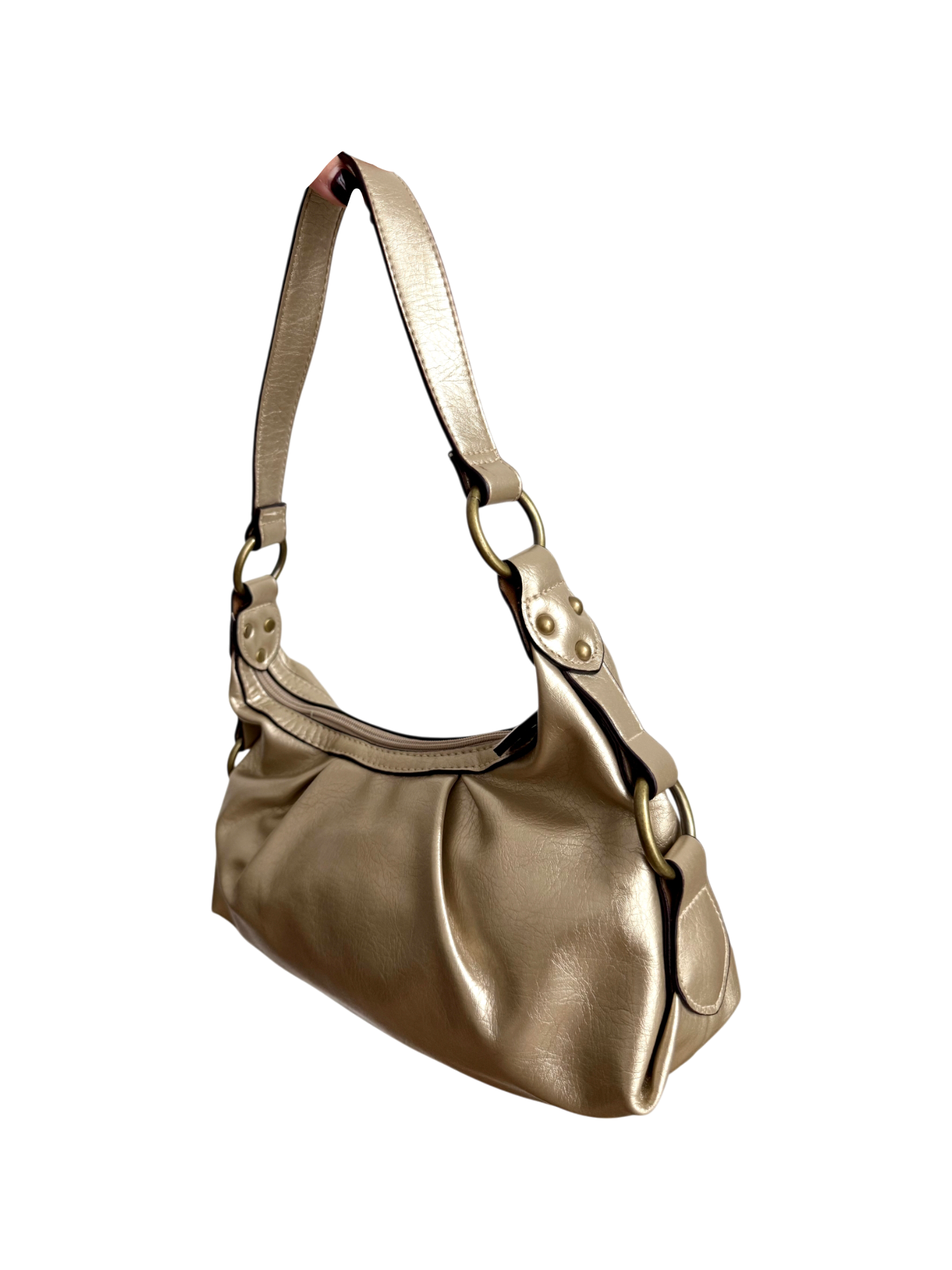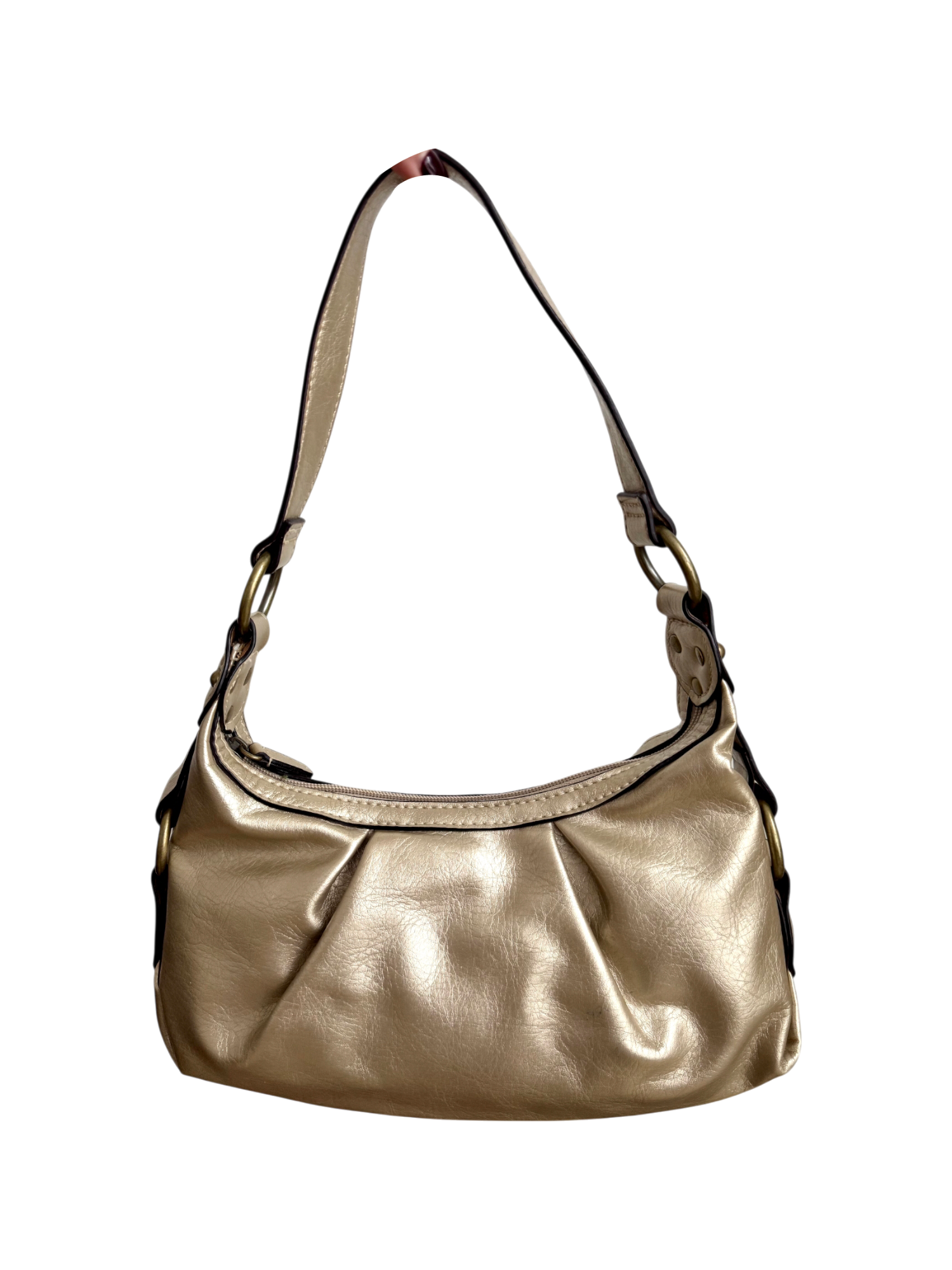 Vintage Y2K Champagne Pleated Shoulder Bag
