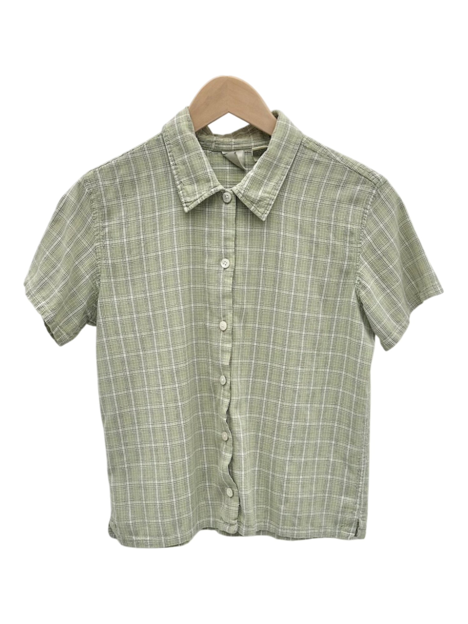 Vintage Y2K Sage Green Checkered Button-Up Top (M)