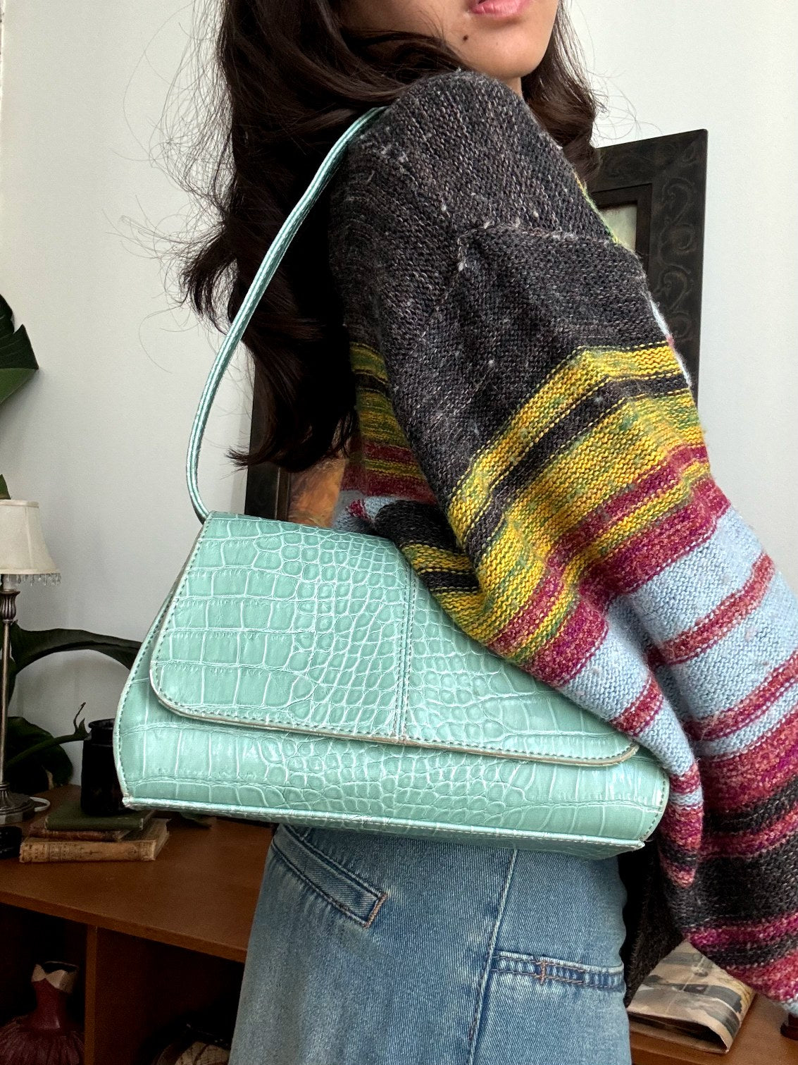Vintage Y2K Turquoise Textured Shoulder Purse