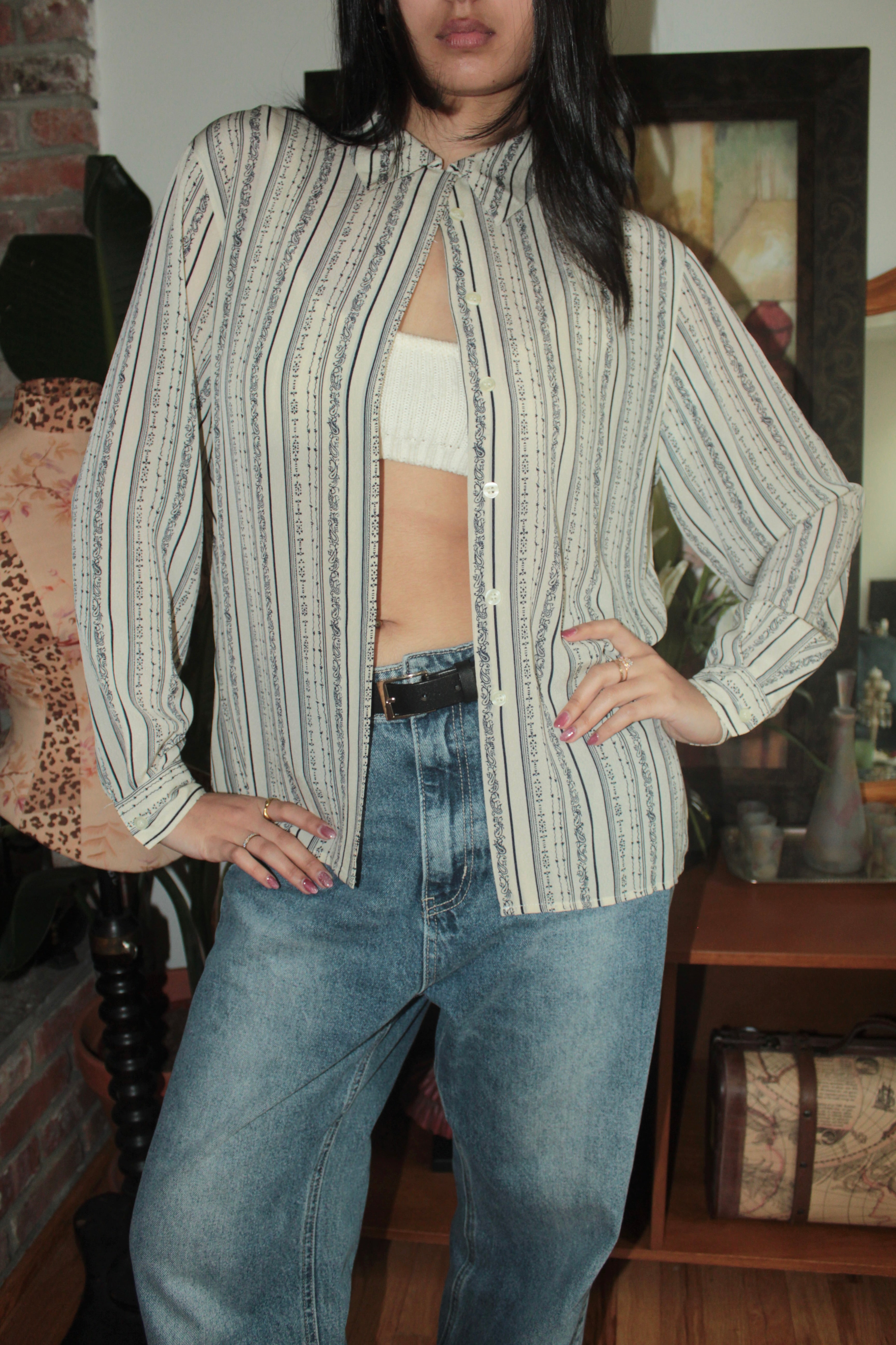 Vintage Mesh Geometric Long Sleeve Button-Up (M)