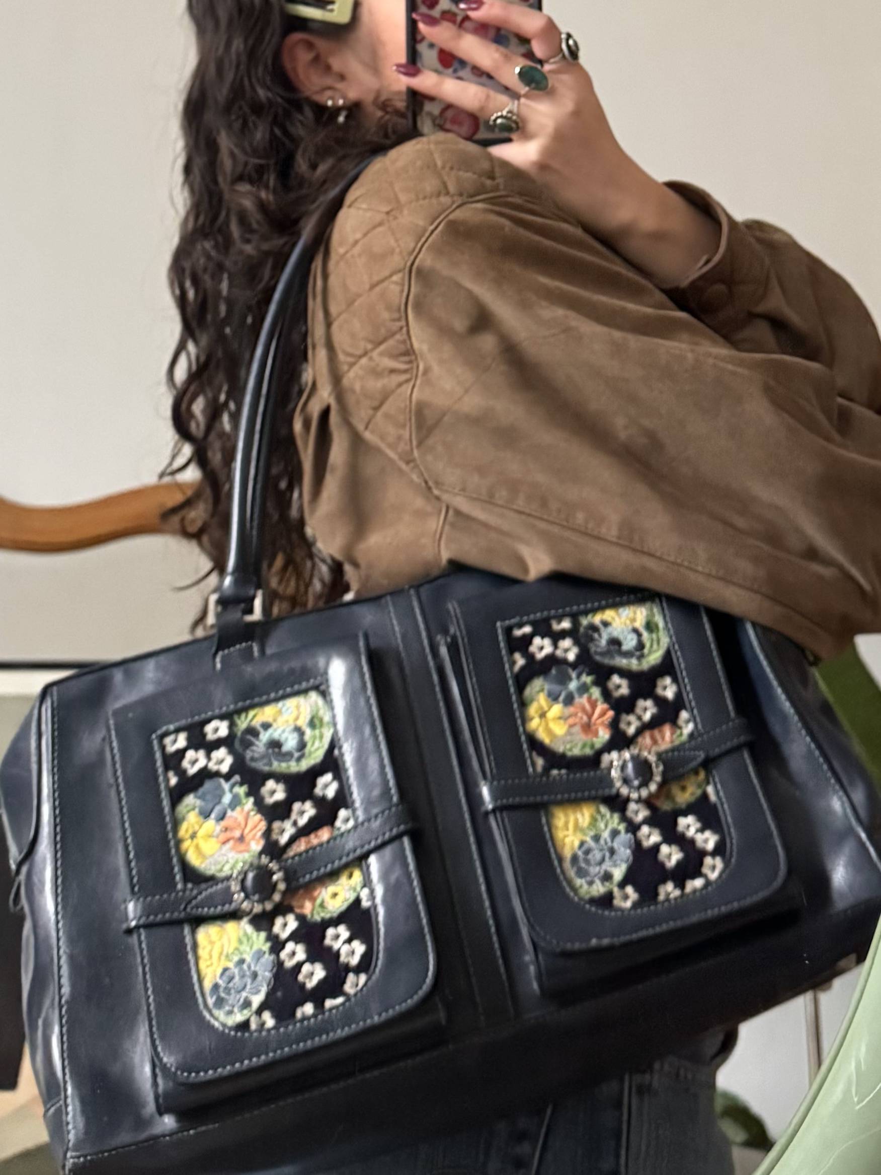 Vintage 90s Midnight Blossom Utility Tote