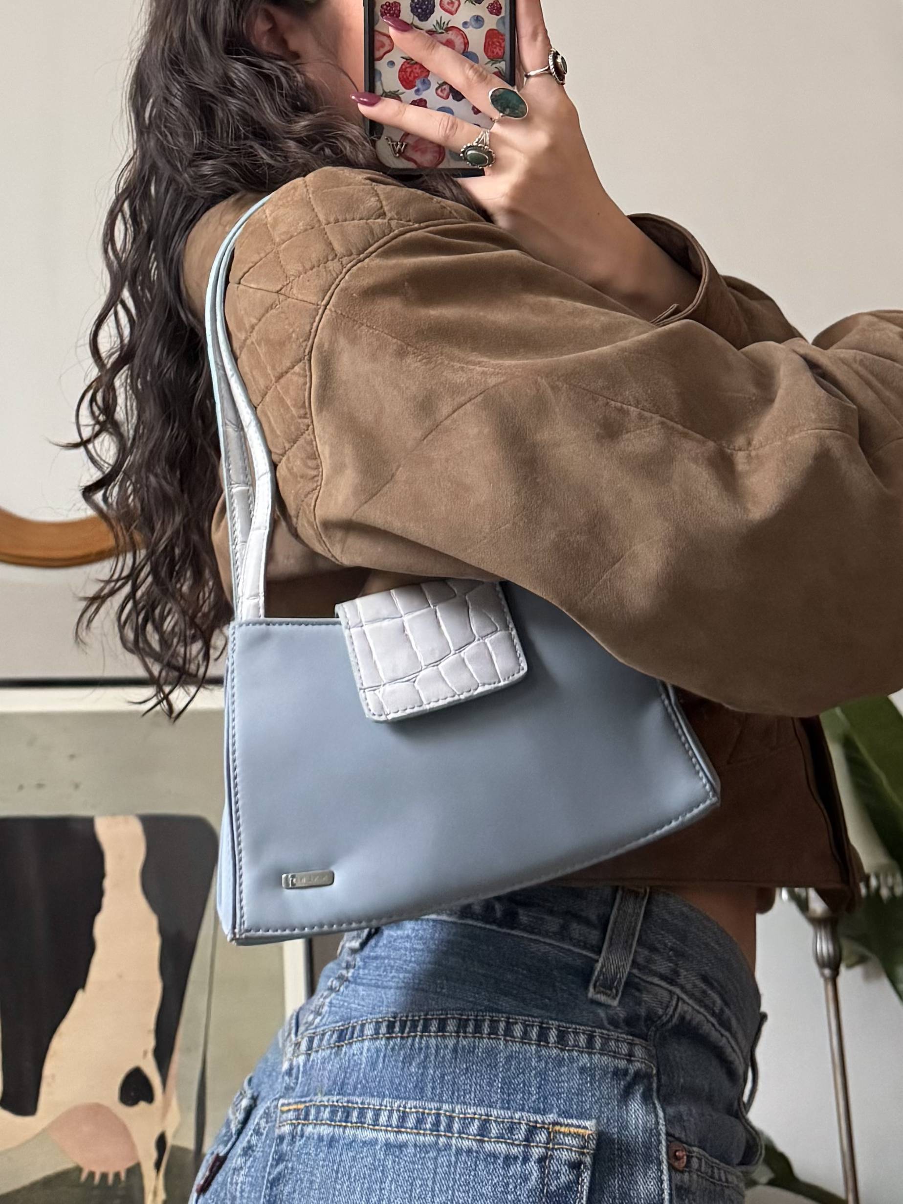 Vintage 90s Powder Blue Croc Accent Bag