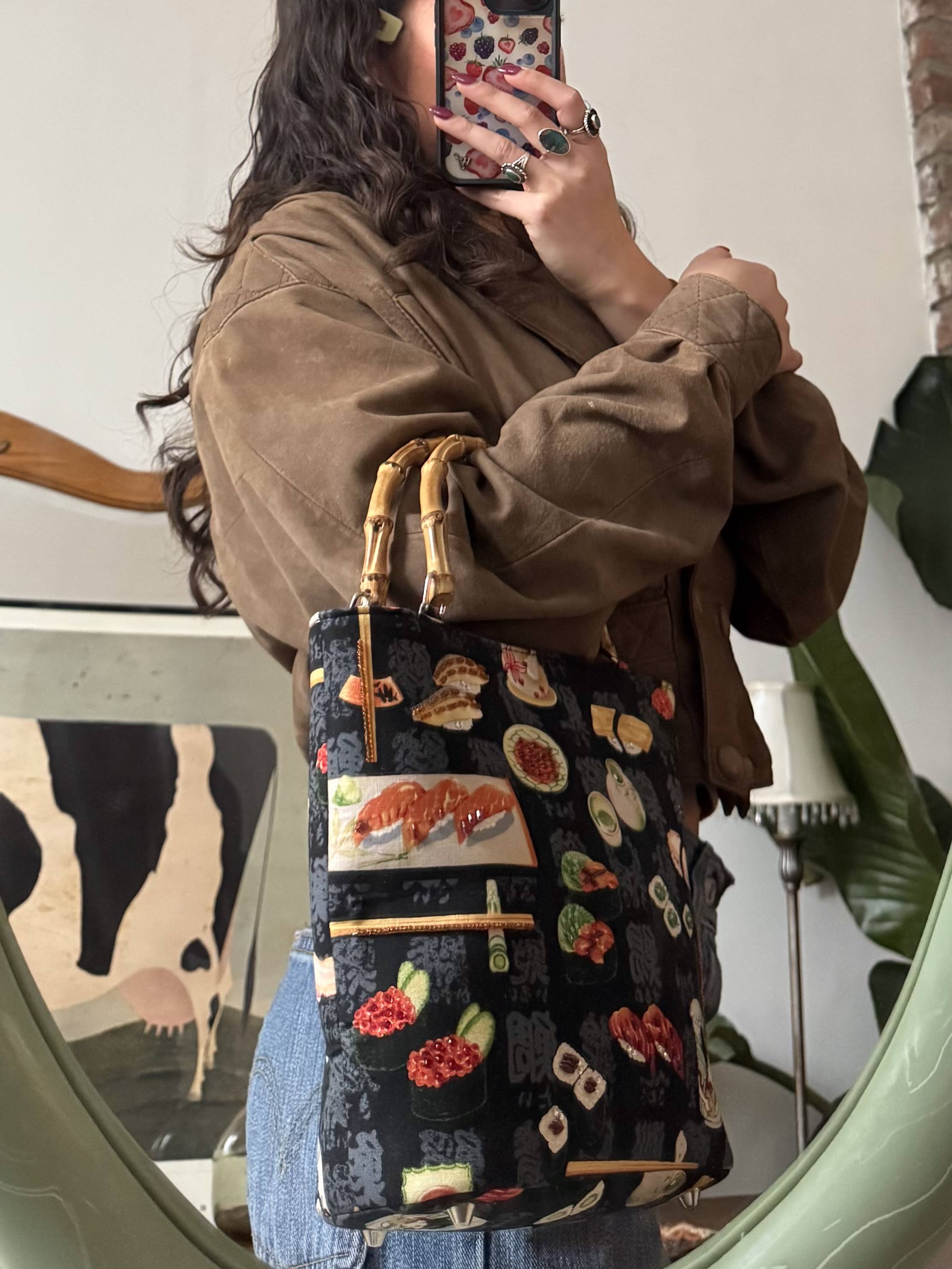 Vintage Sushi Date Bamboo Handle Bag