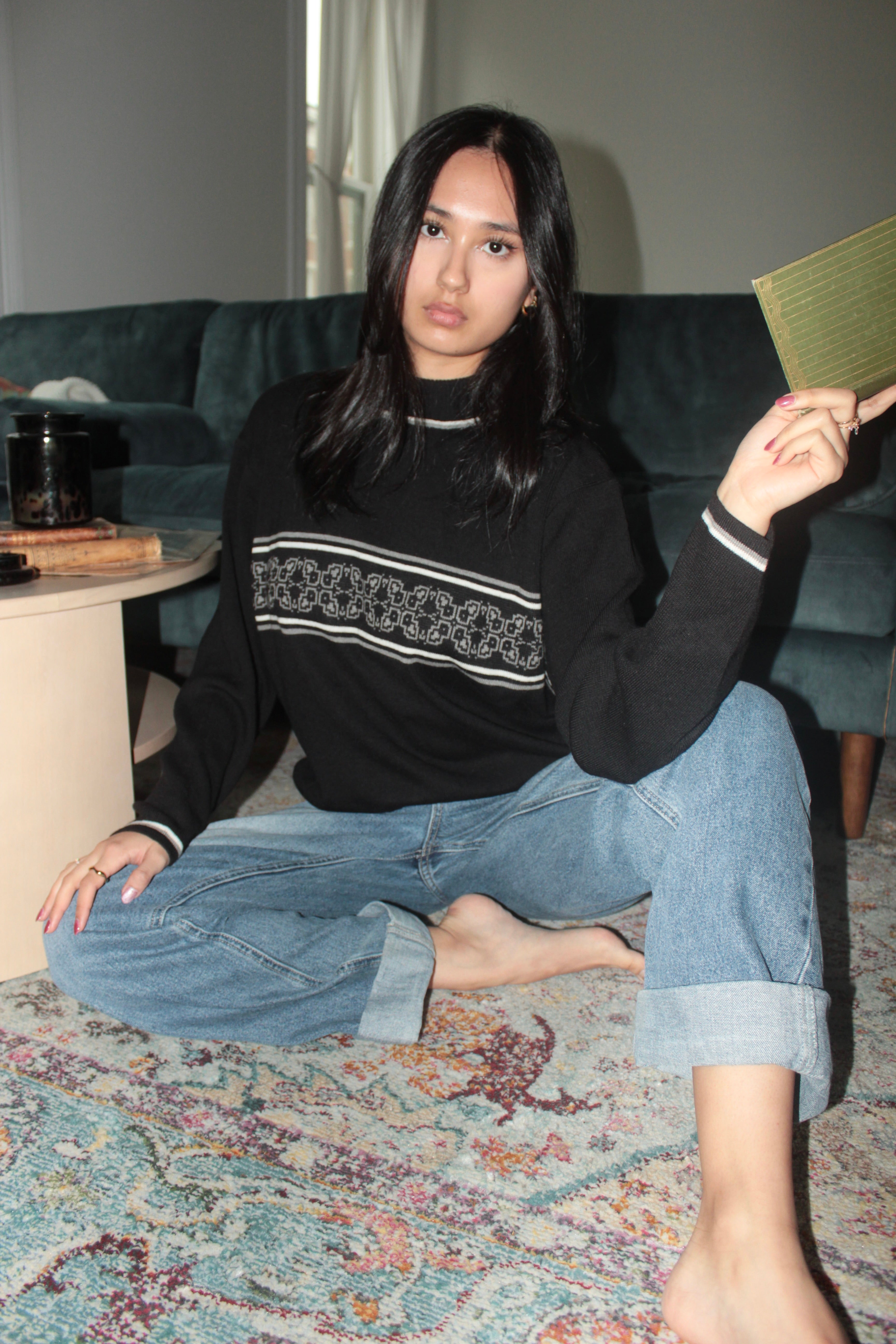 Vintage 2000s Charcoal Mock-Layer Blouse Sweater (S)