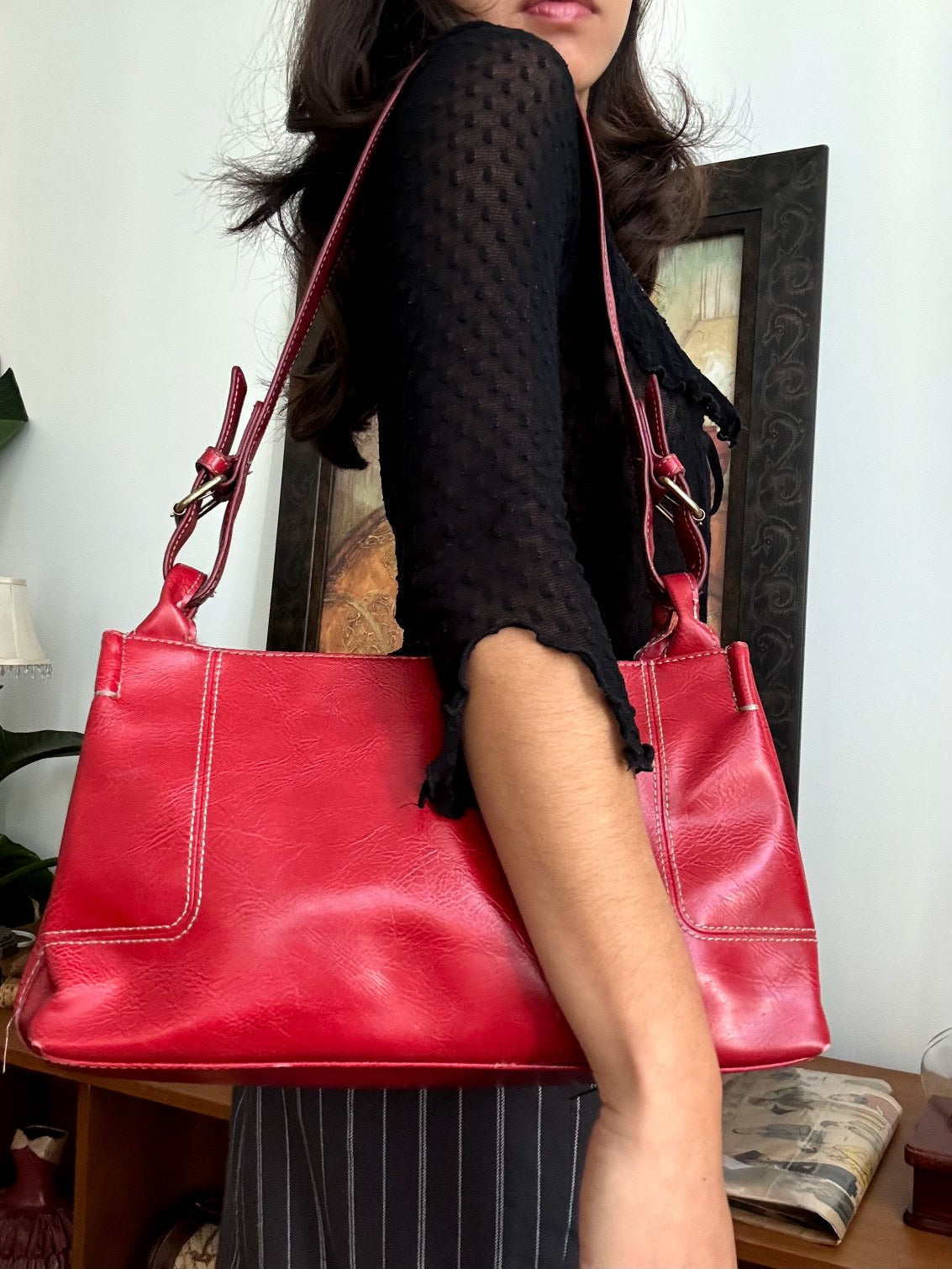 Vintage 90s Timeless Cherry Red Shoulder Purse
