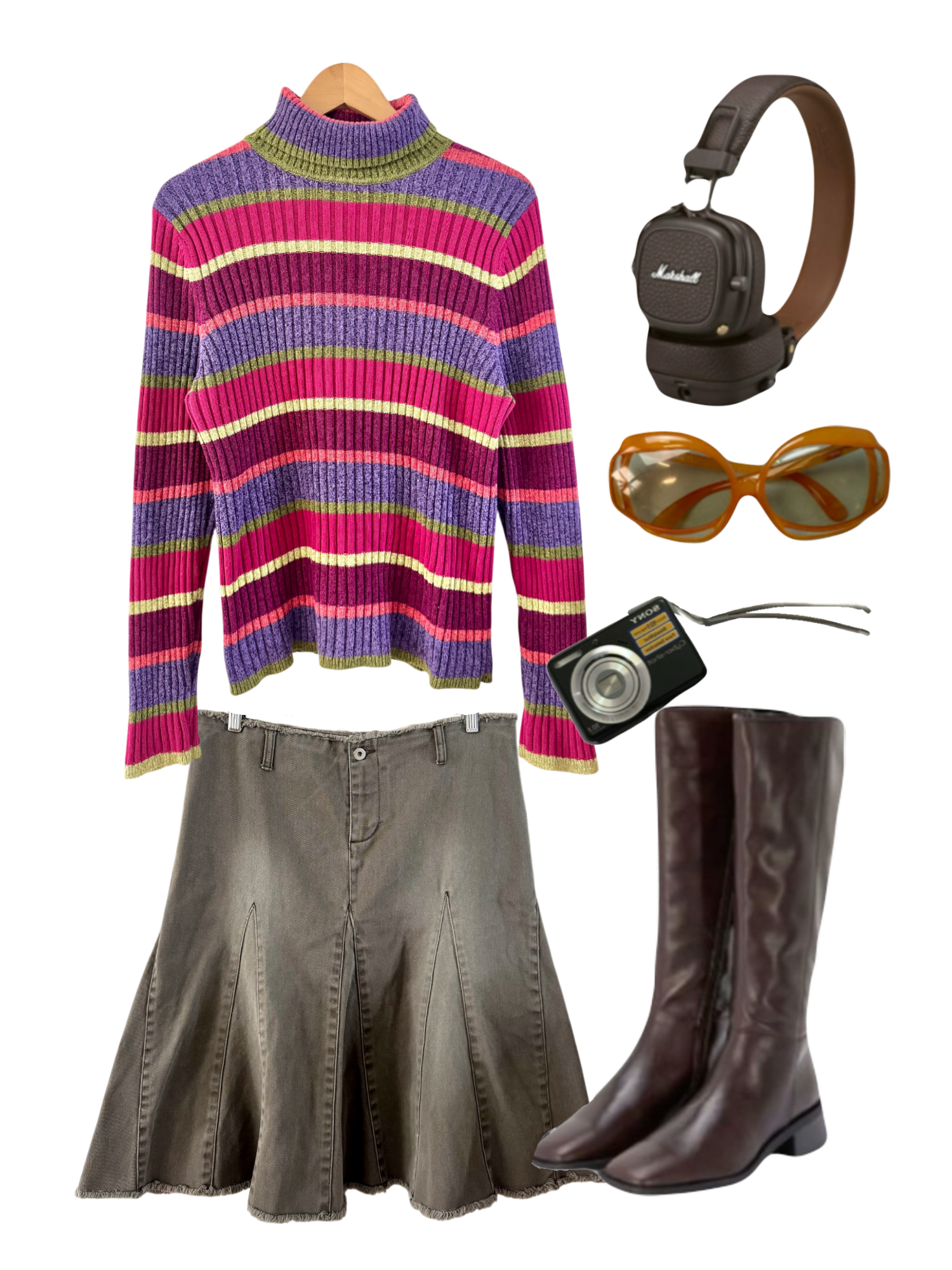 Vintage 90s Retro Stripe Midi Skirt (S/M)