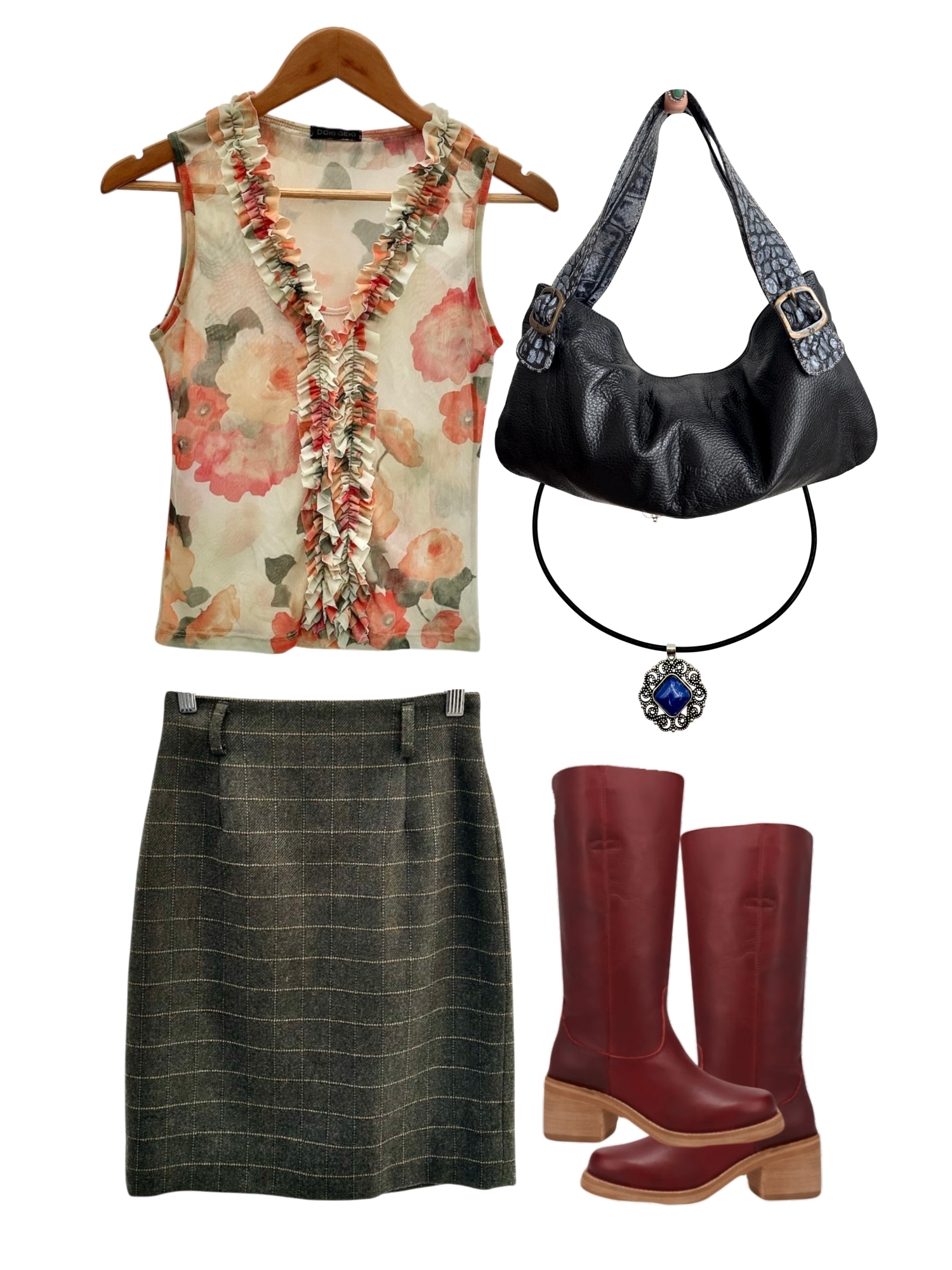 Vintage Plaid & Lace Afternoon Skirt (XS/S)