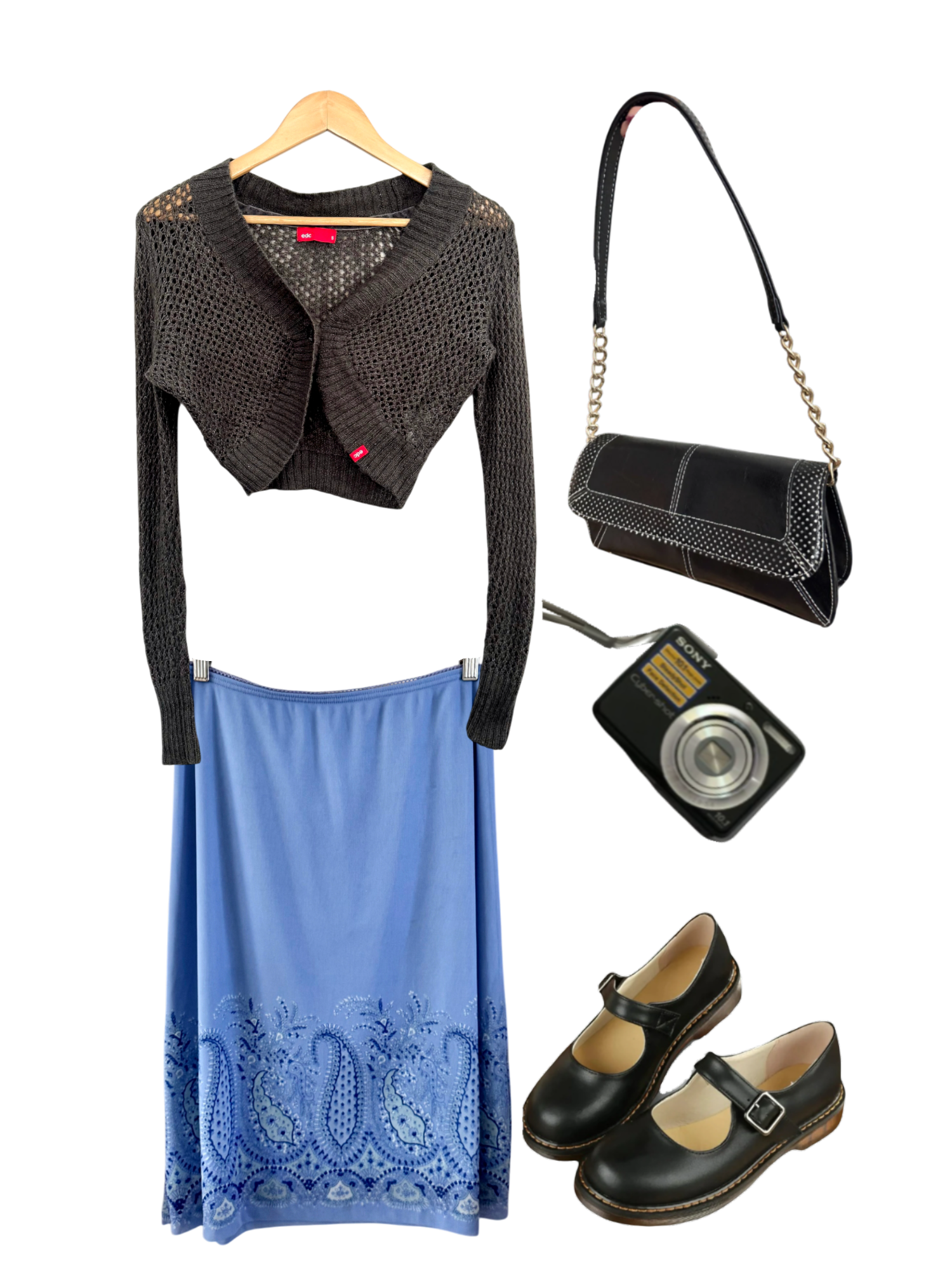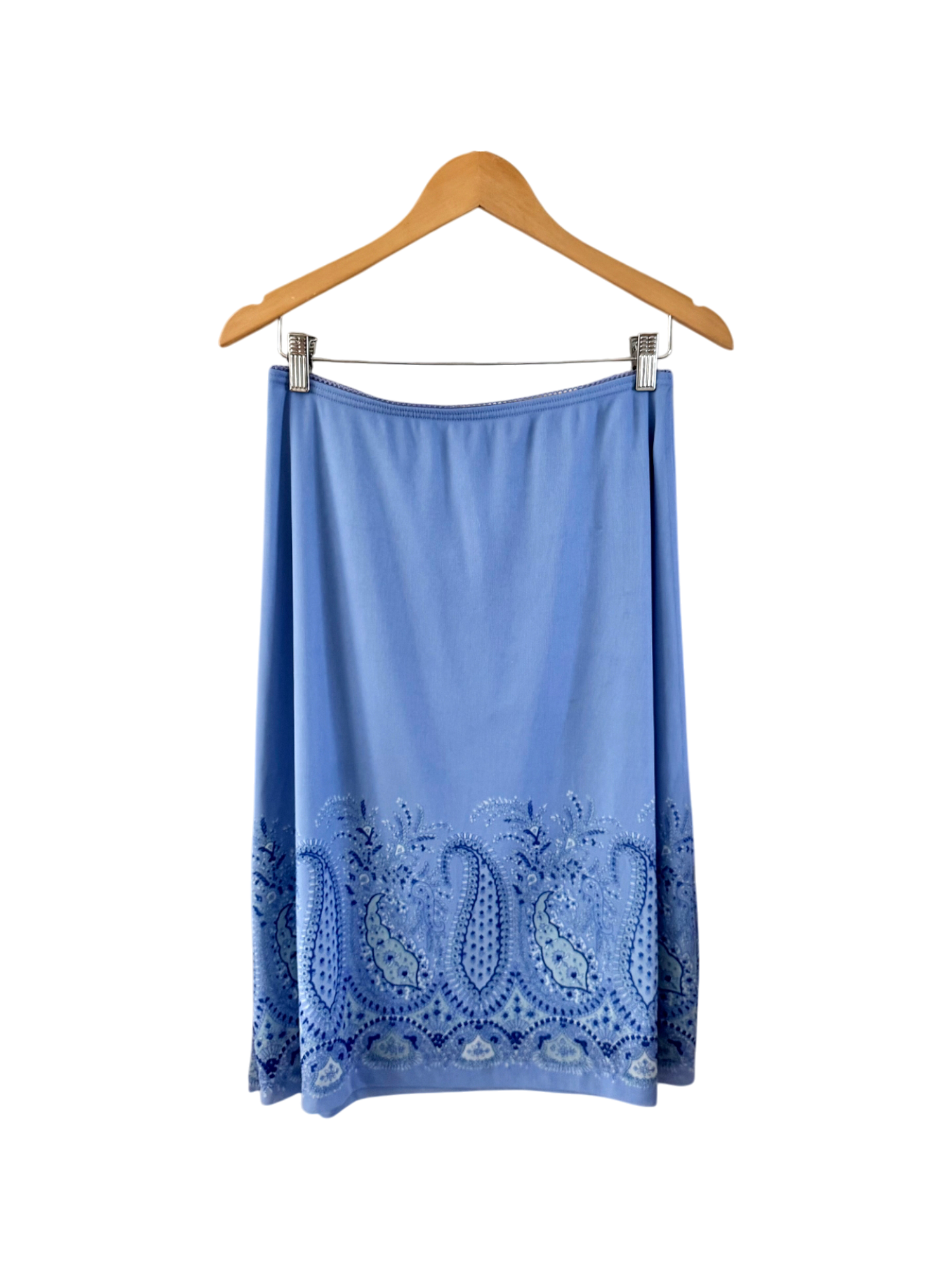 Vintage 90s Powder Blue Paisley Midi Skirt (M)