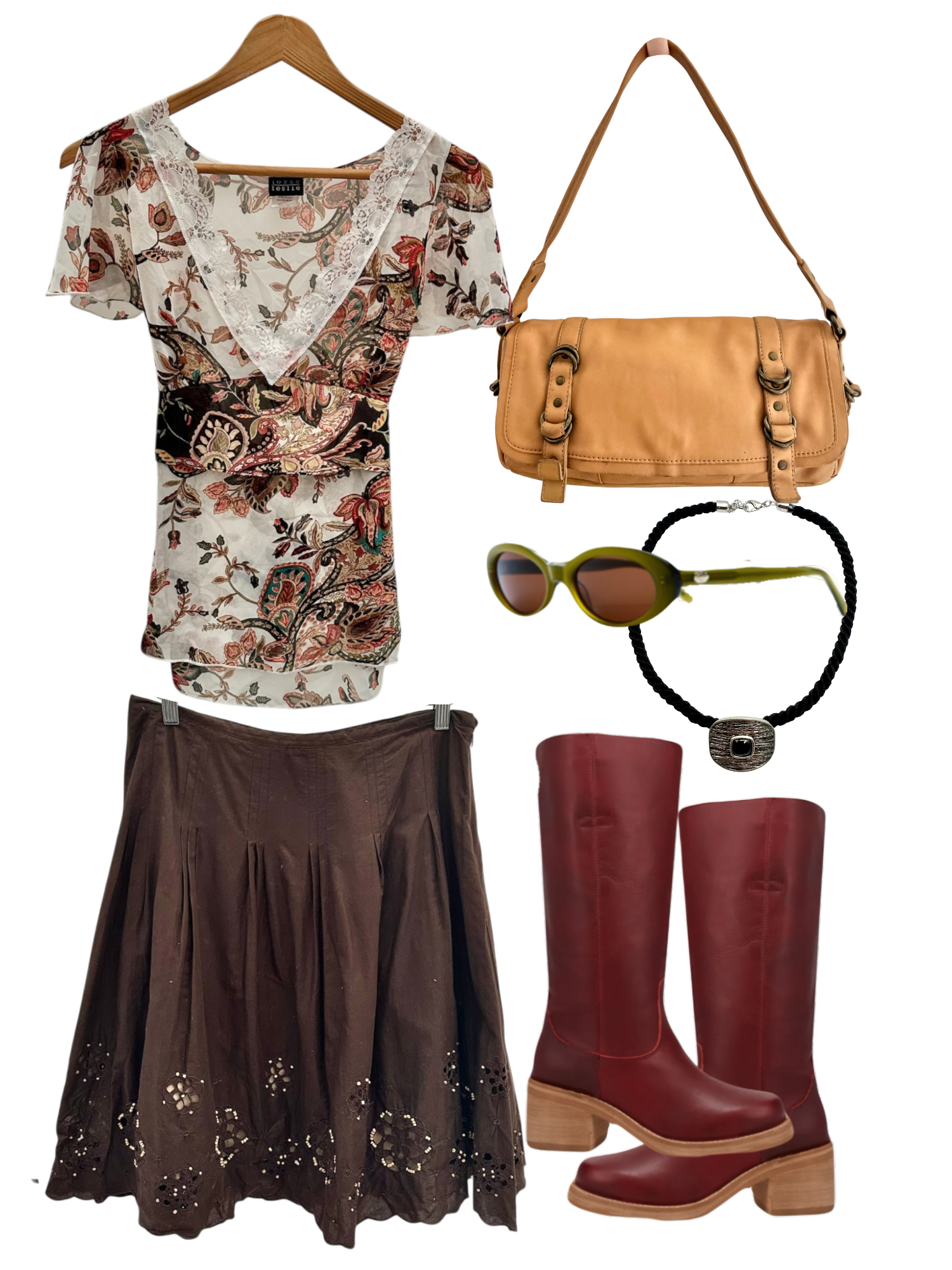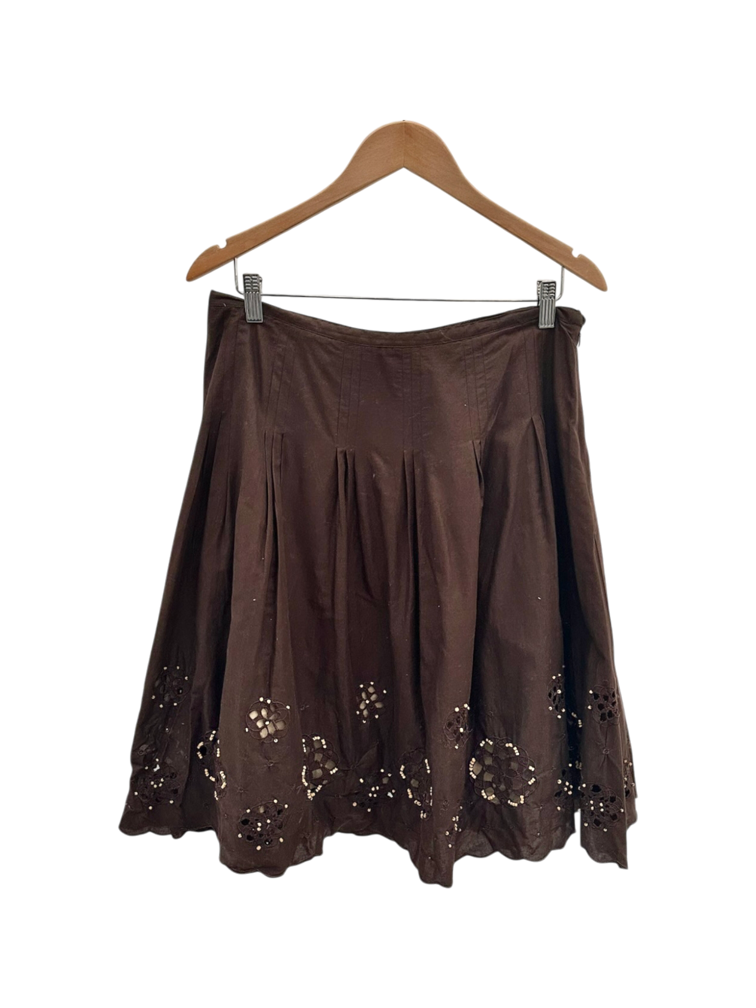 Vintage Cocoa Boho Eyelet Midi Skirt (M)