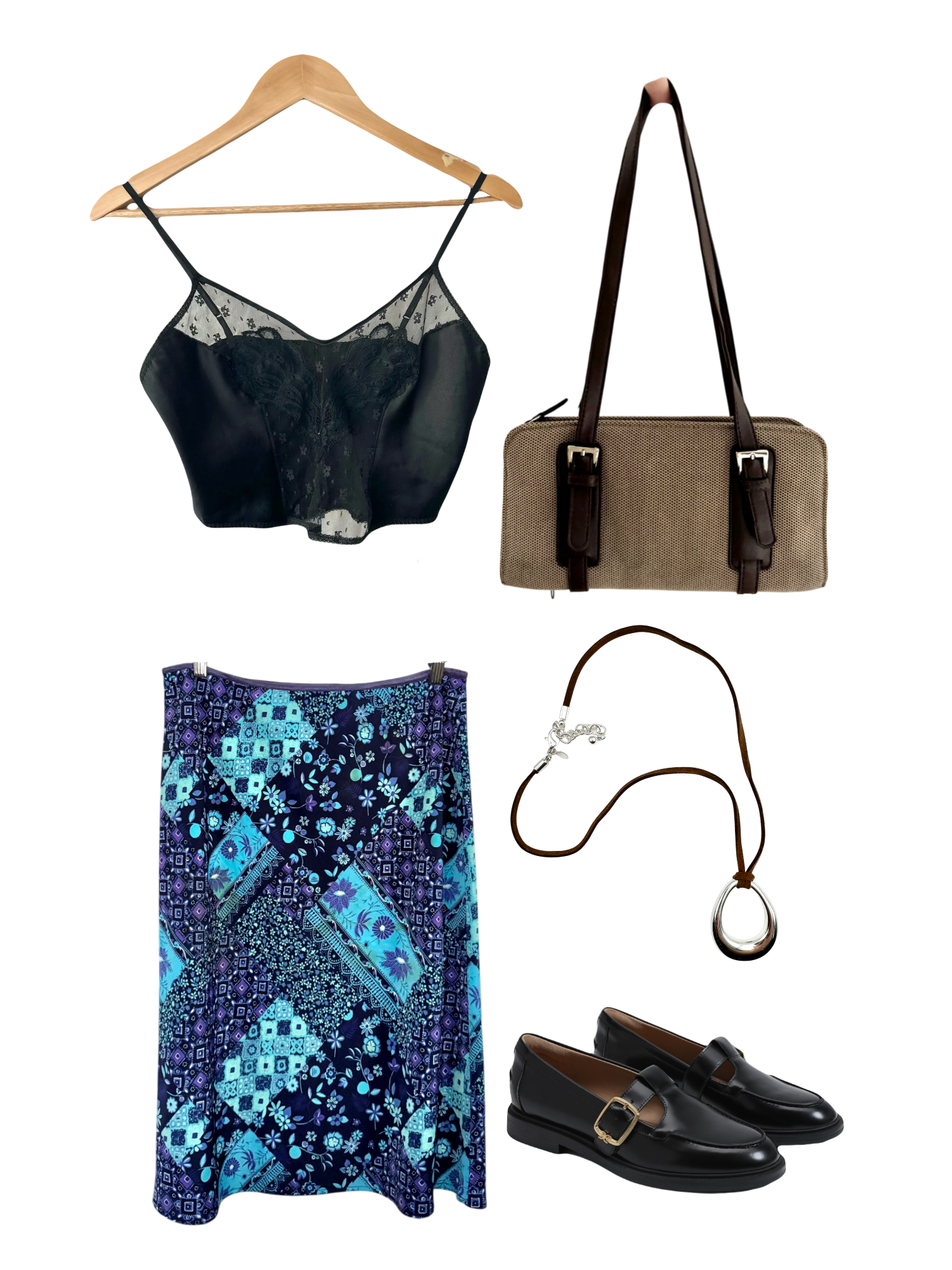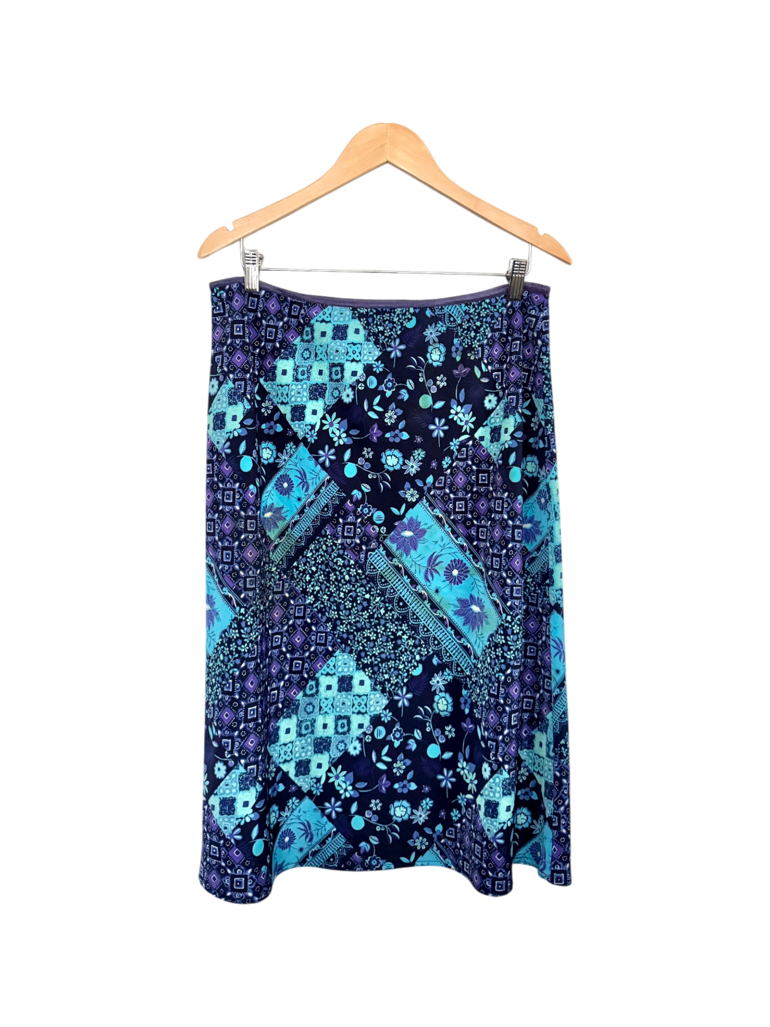 Vintage 90s Boho Patchwork Midi Skirt (L)
