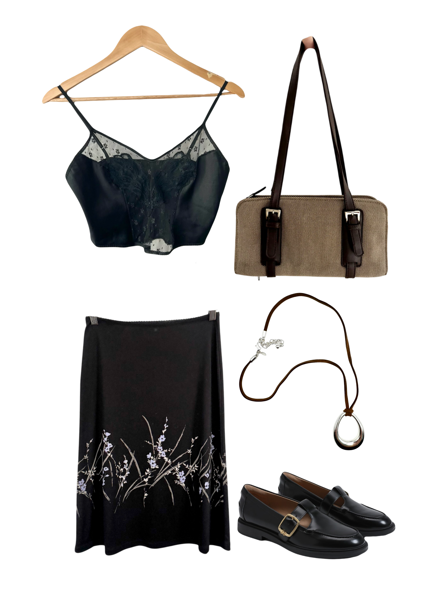 Vintage Noir Romance Floral Midi Skirt (M)