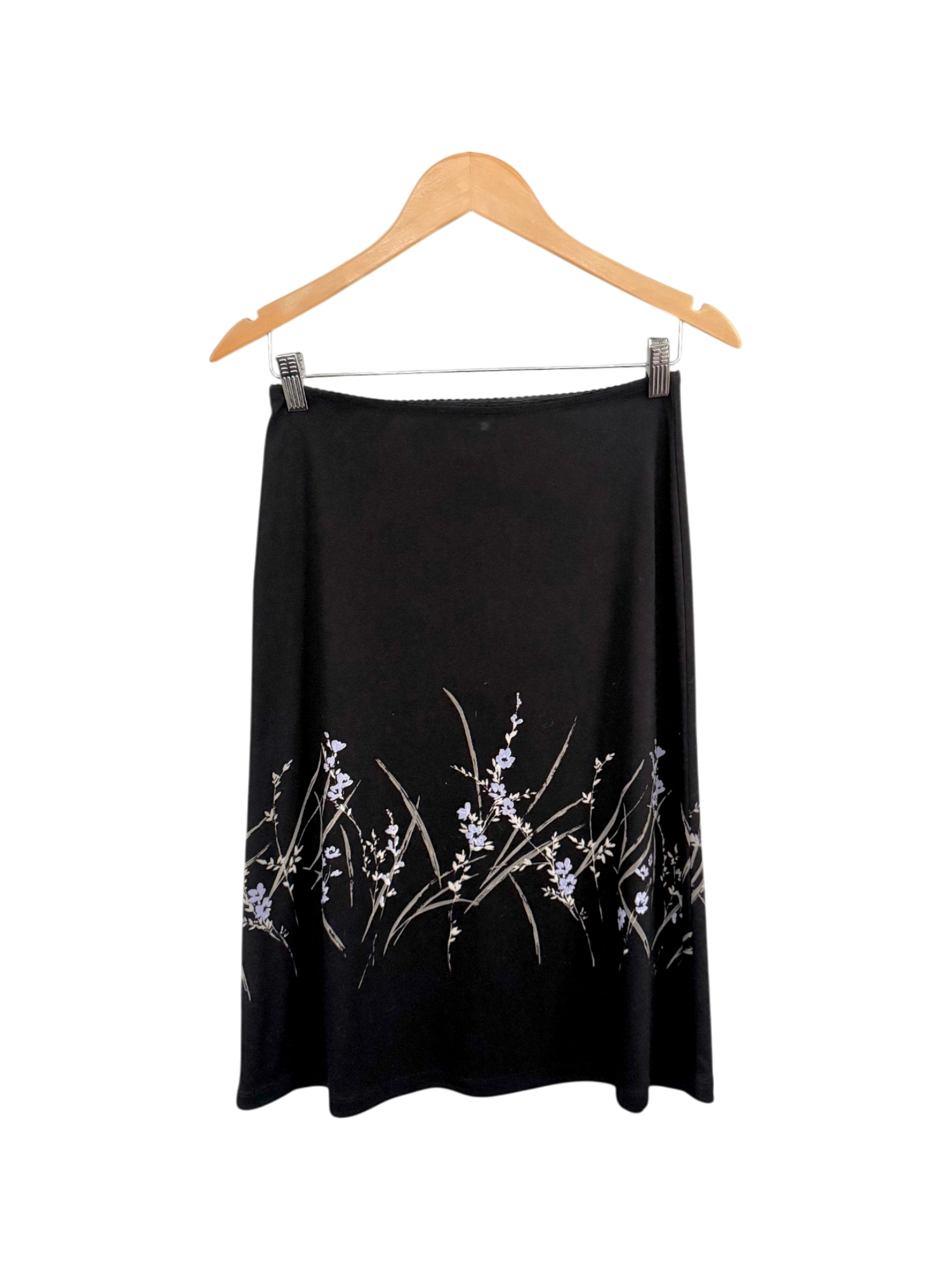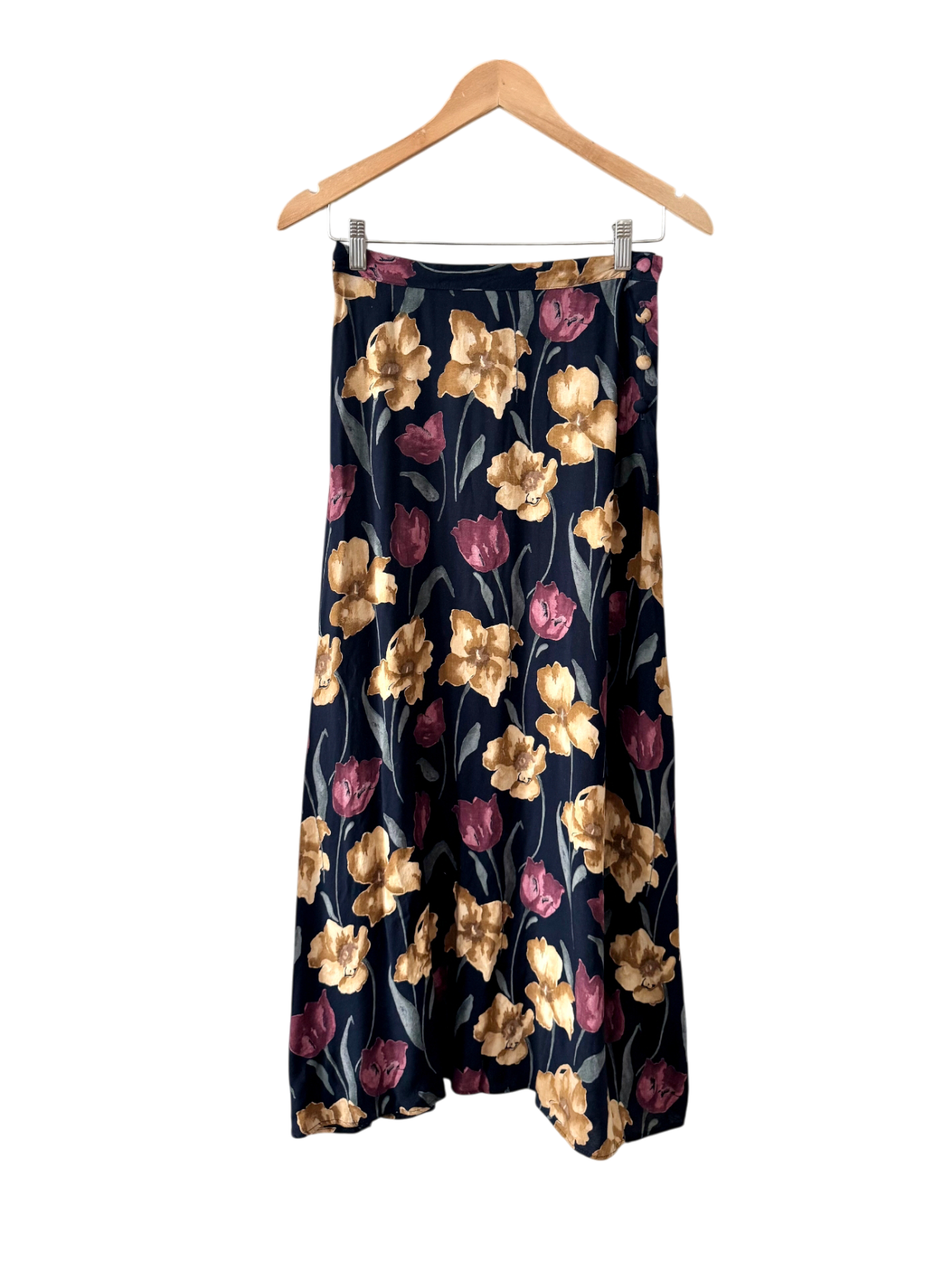 Vintage 90s Romantic Midnight Floral Midi Skirt (S)
