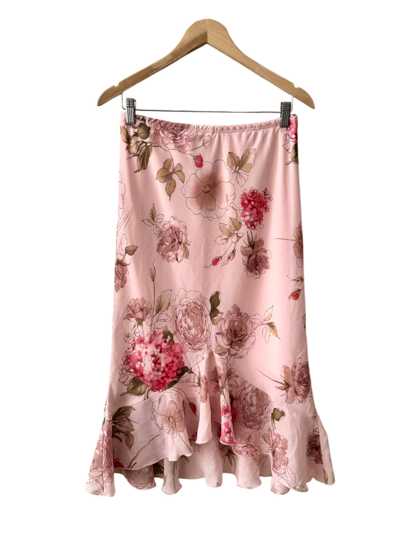 Vintage Y2K Blush Floral Ruffle Skirt (L)