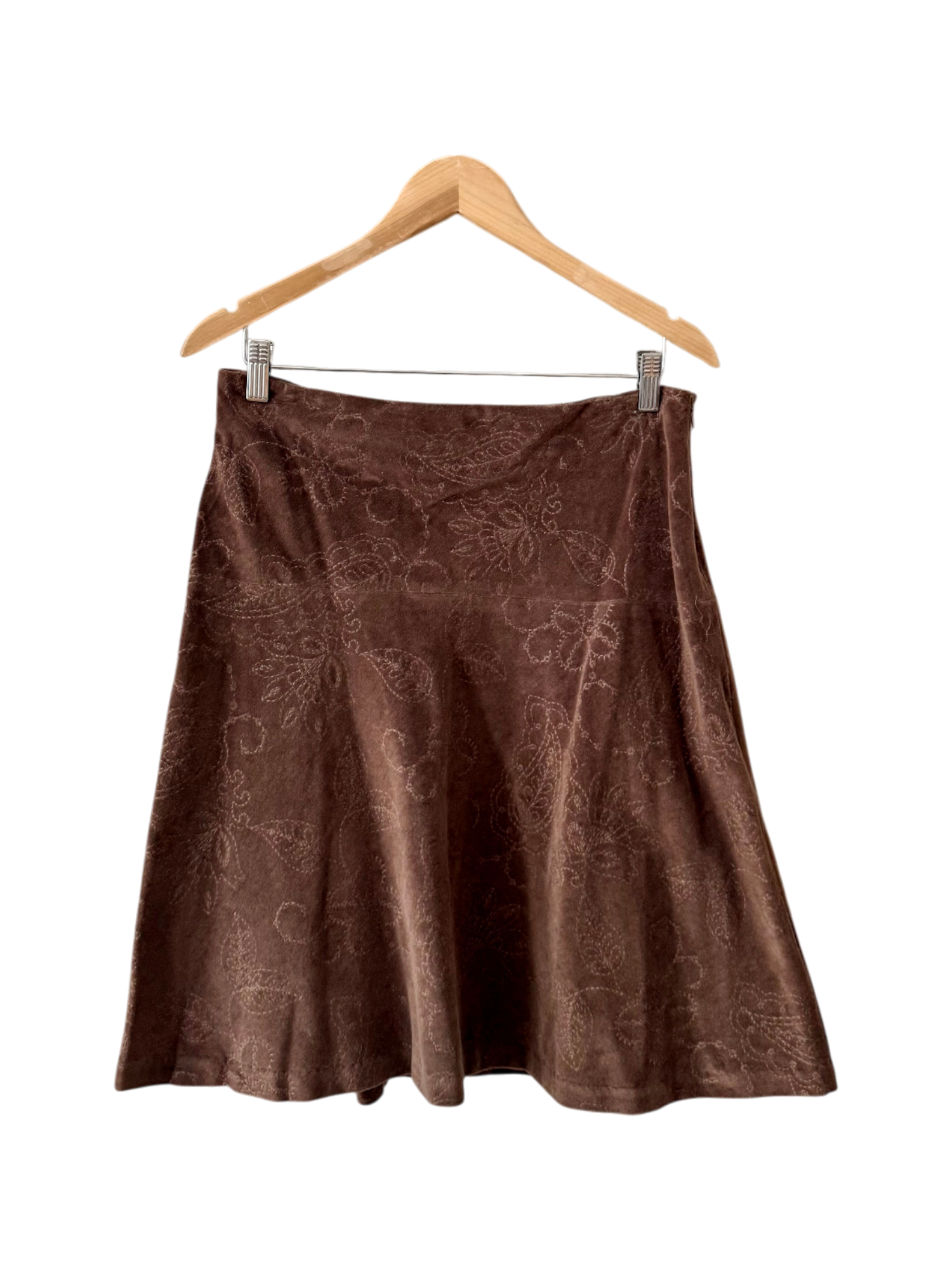 Vintage Cocoa Floral Textured Midi Skirt (S/M)