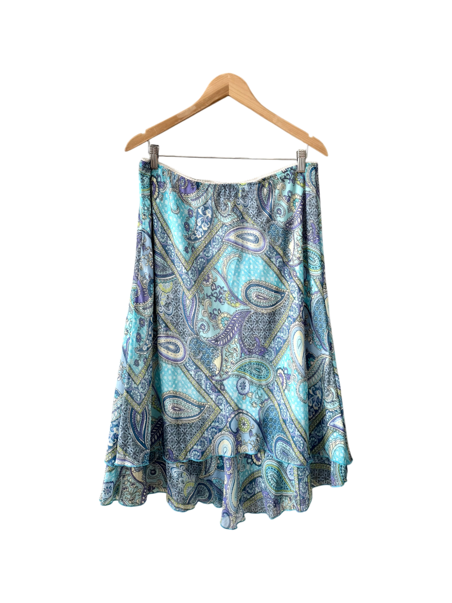 Vintage 90s Aqua Paisley Ruffle Skirt (L)