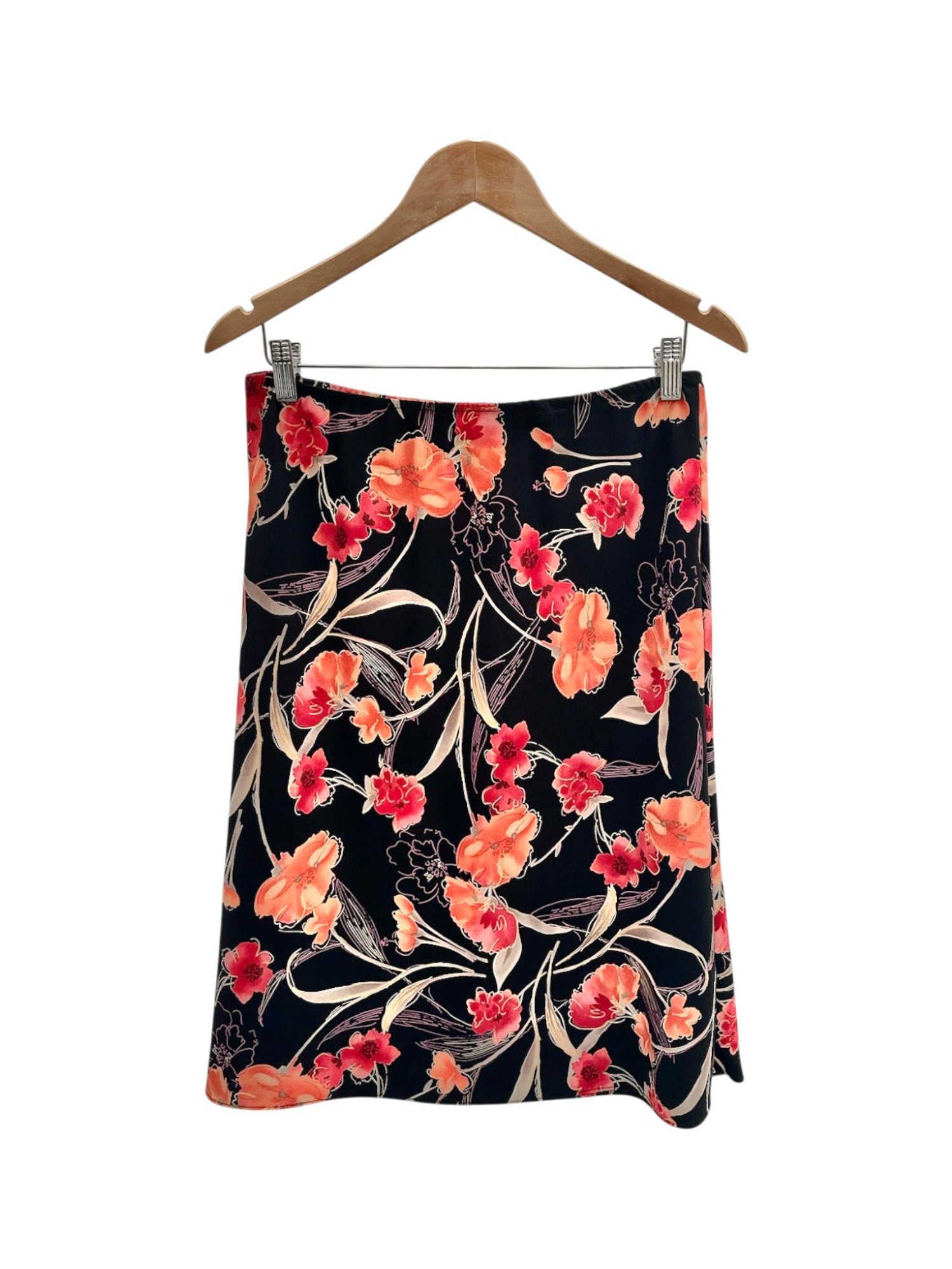 Vintage Retro Floral Bias-Cut Midi Skirt (S)