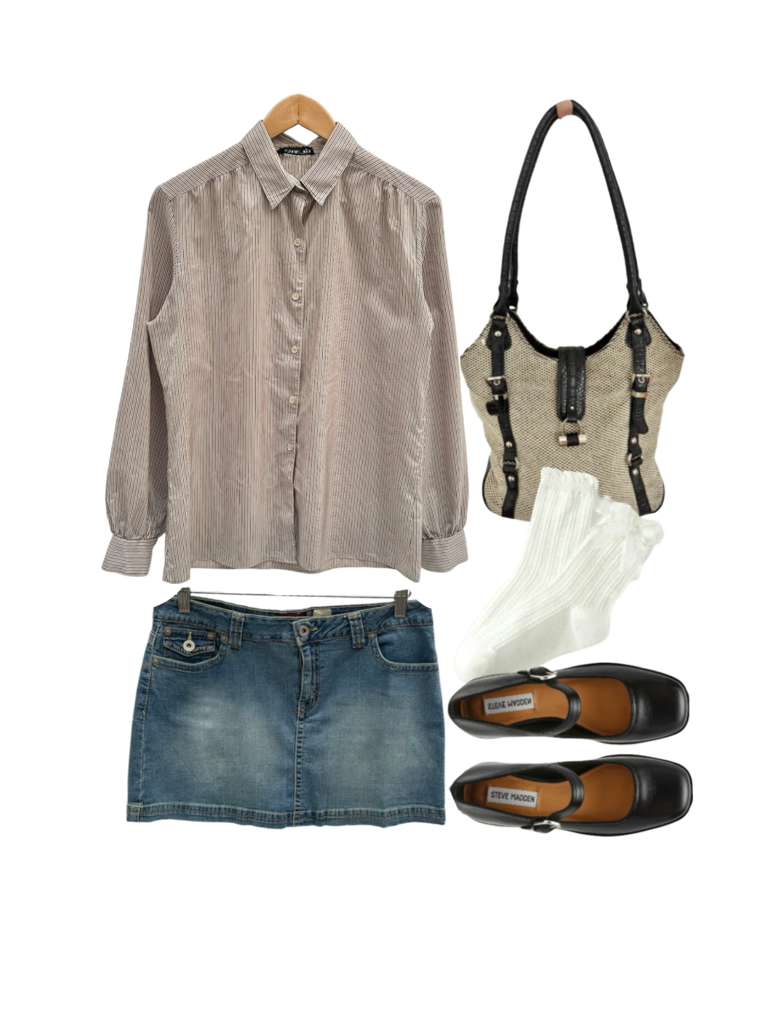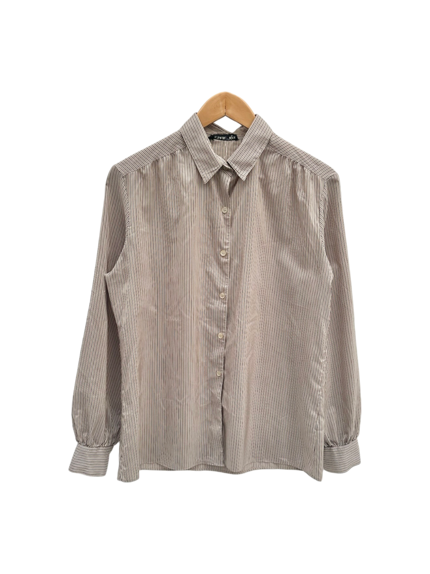 Vintage 80s Pinstriped Slinky Button Up (M/L)
