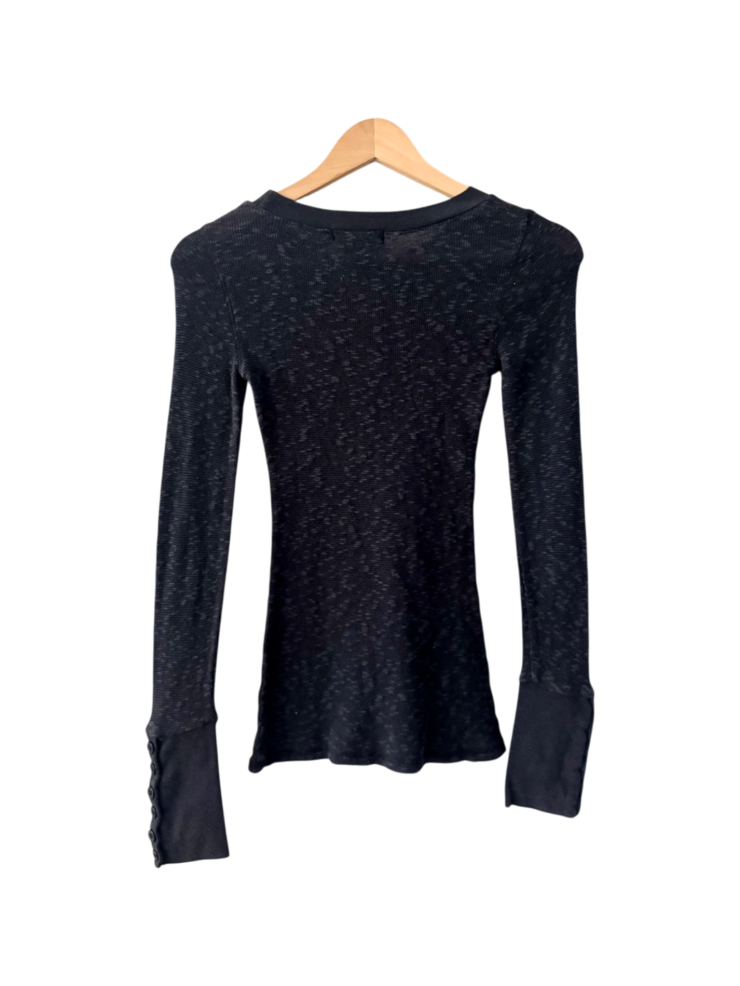 Vintage Y2K Midnight Rib Button-Cuff Top (S)