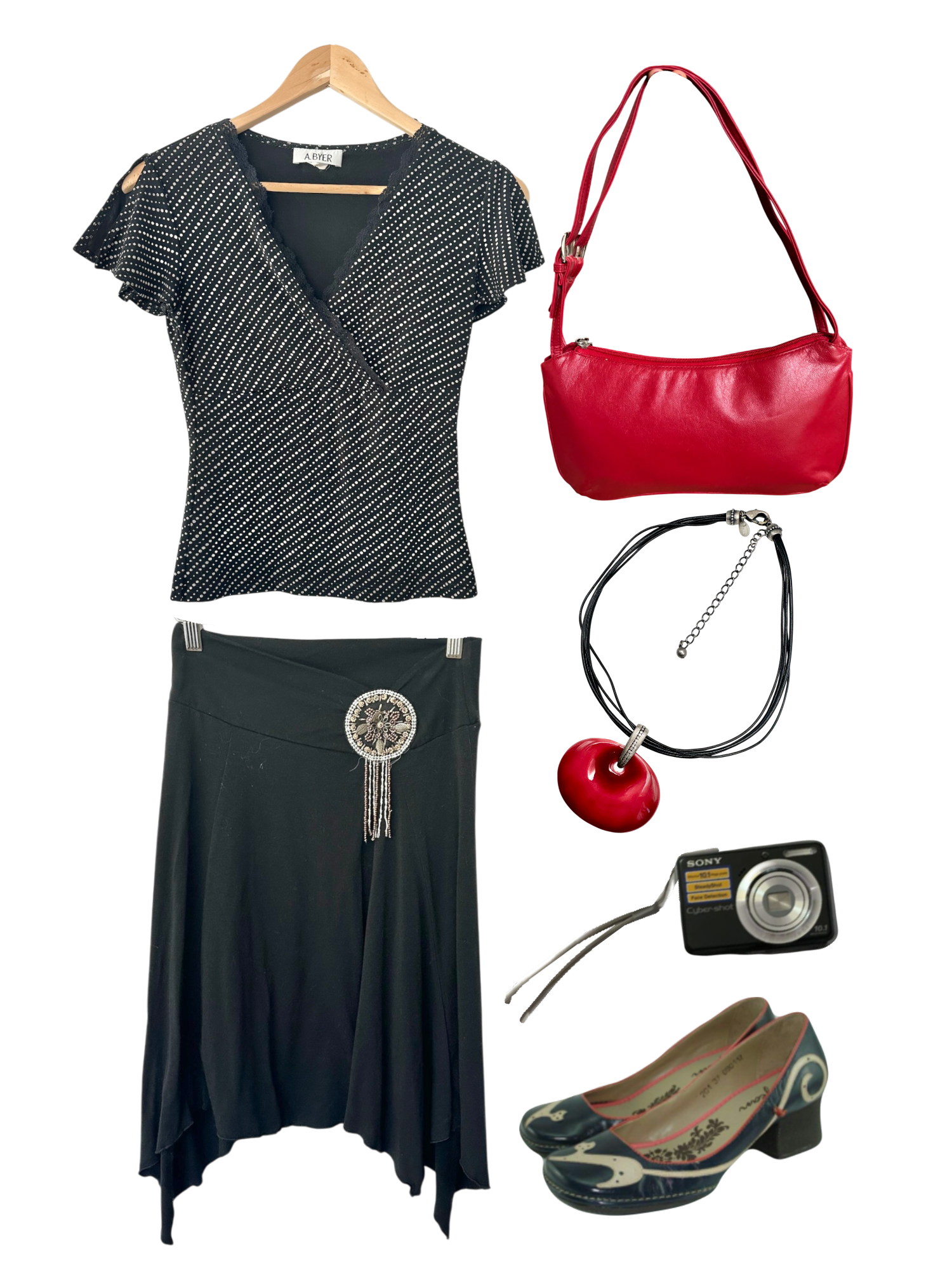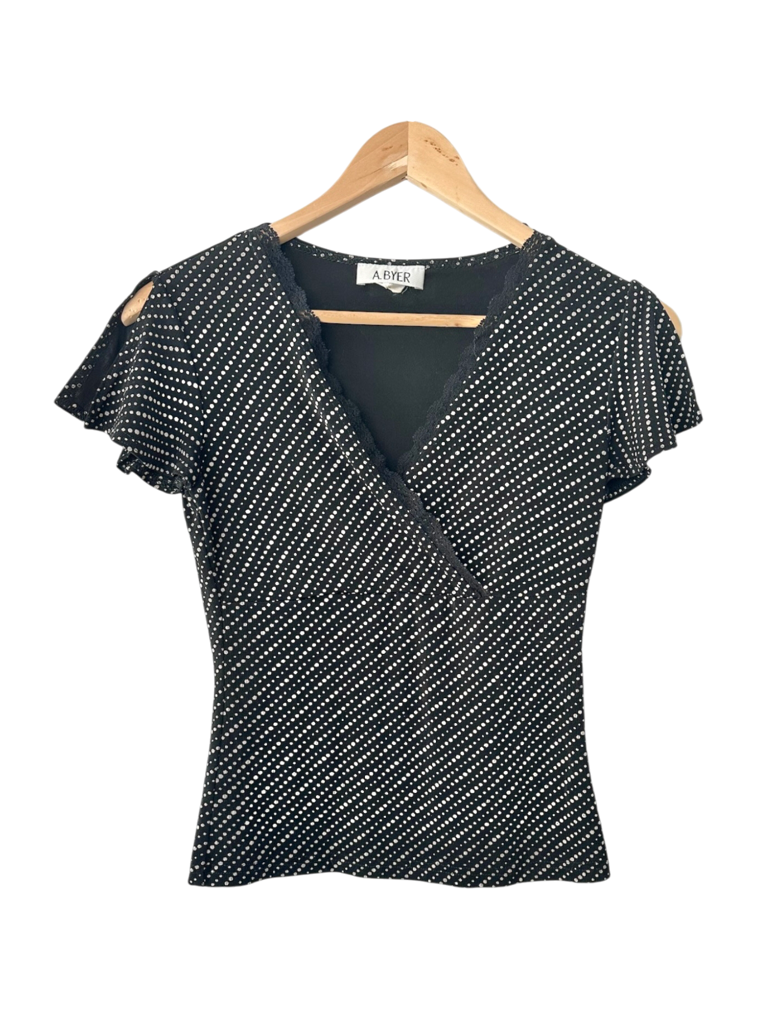 Vintage 90s Midnight Polka Wrap Top (M/L)