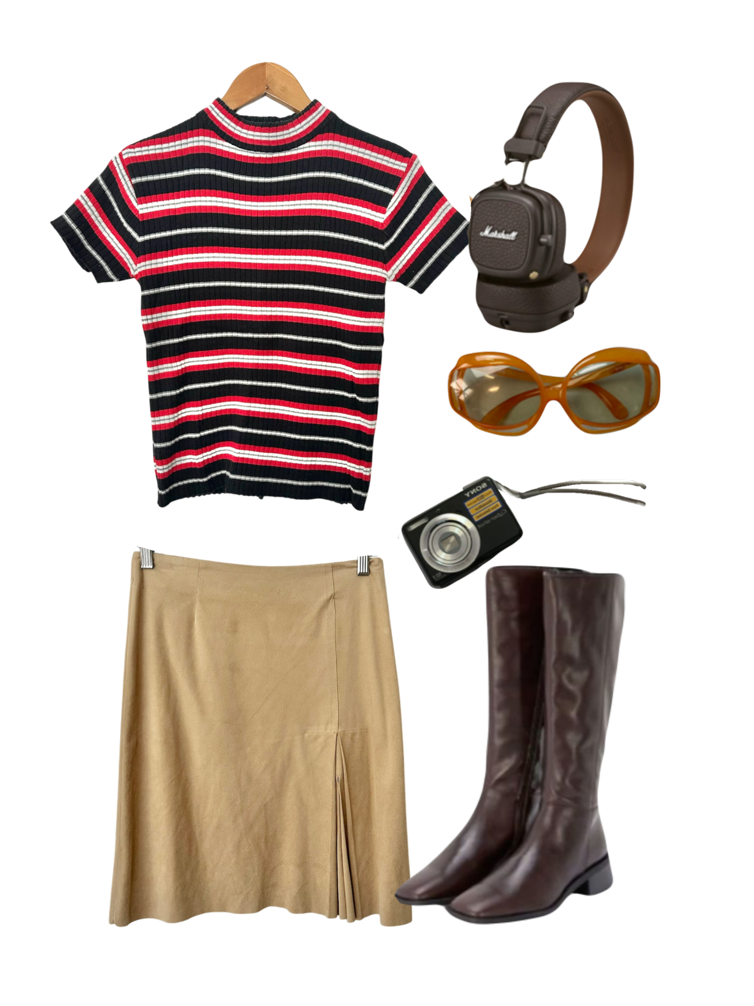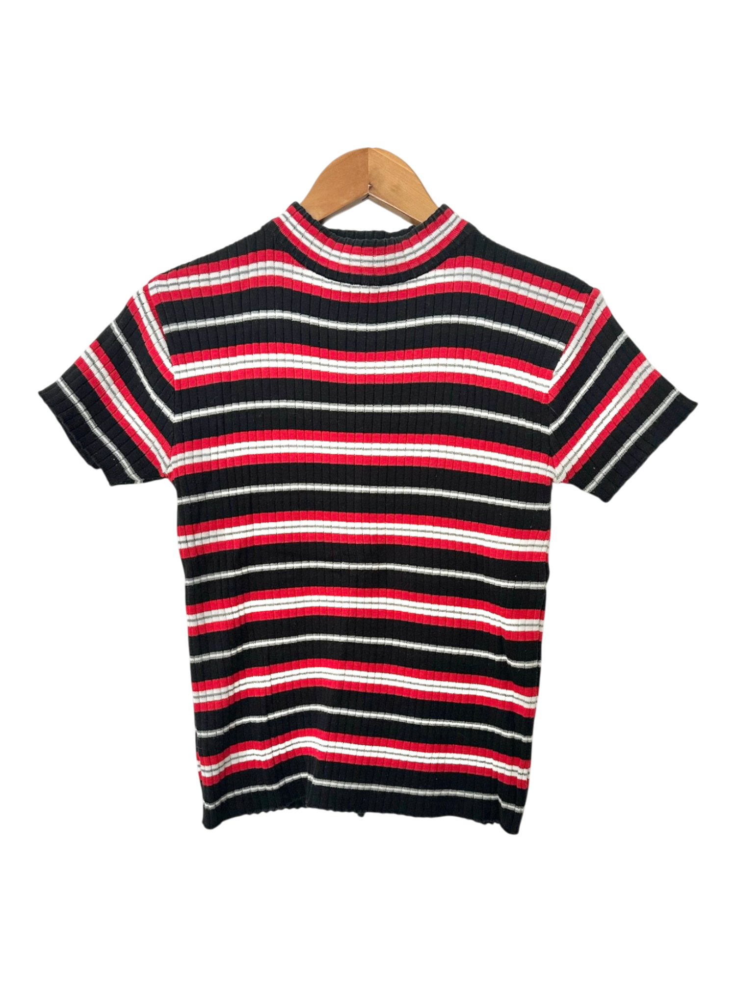 Vintage Y2K Red Stripe Ribbed Baby Tee (M)