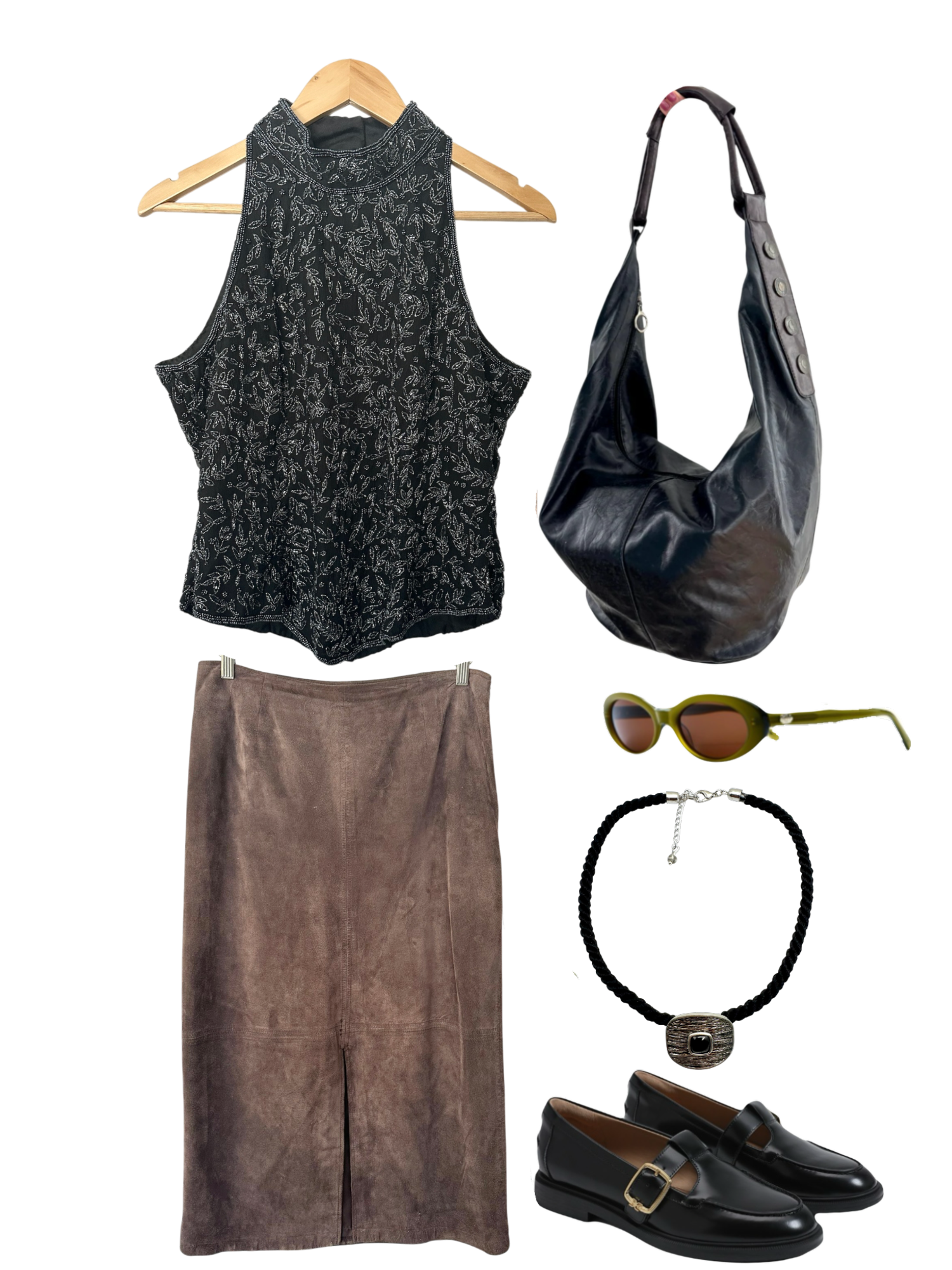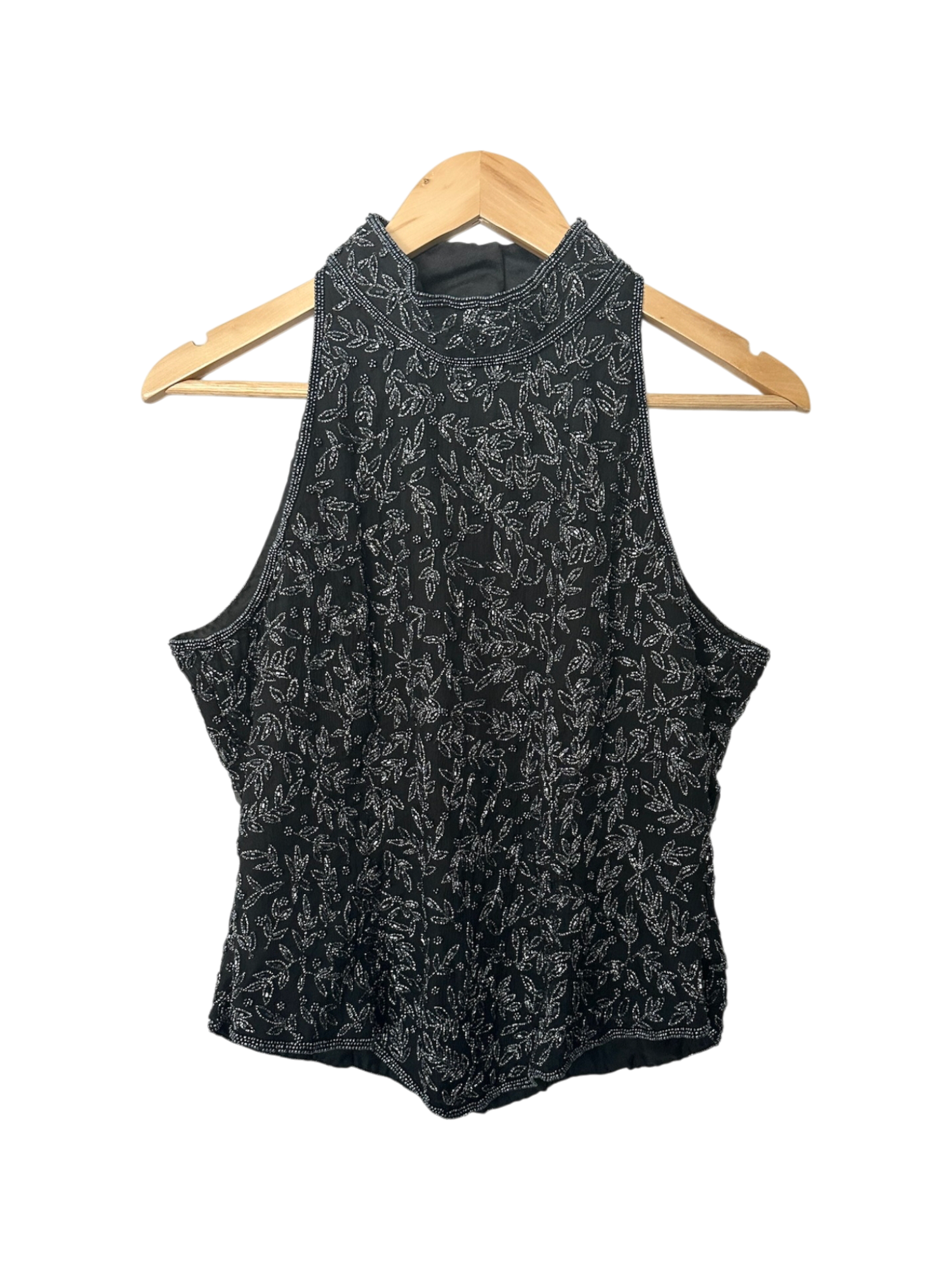 Vintage 90s Midnight Beaded Leaf Tank (L)
