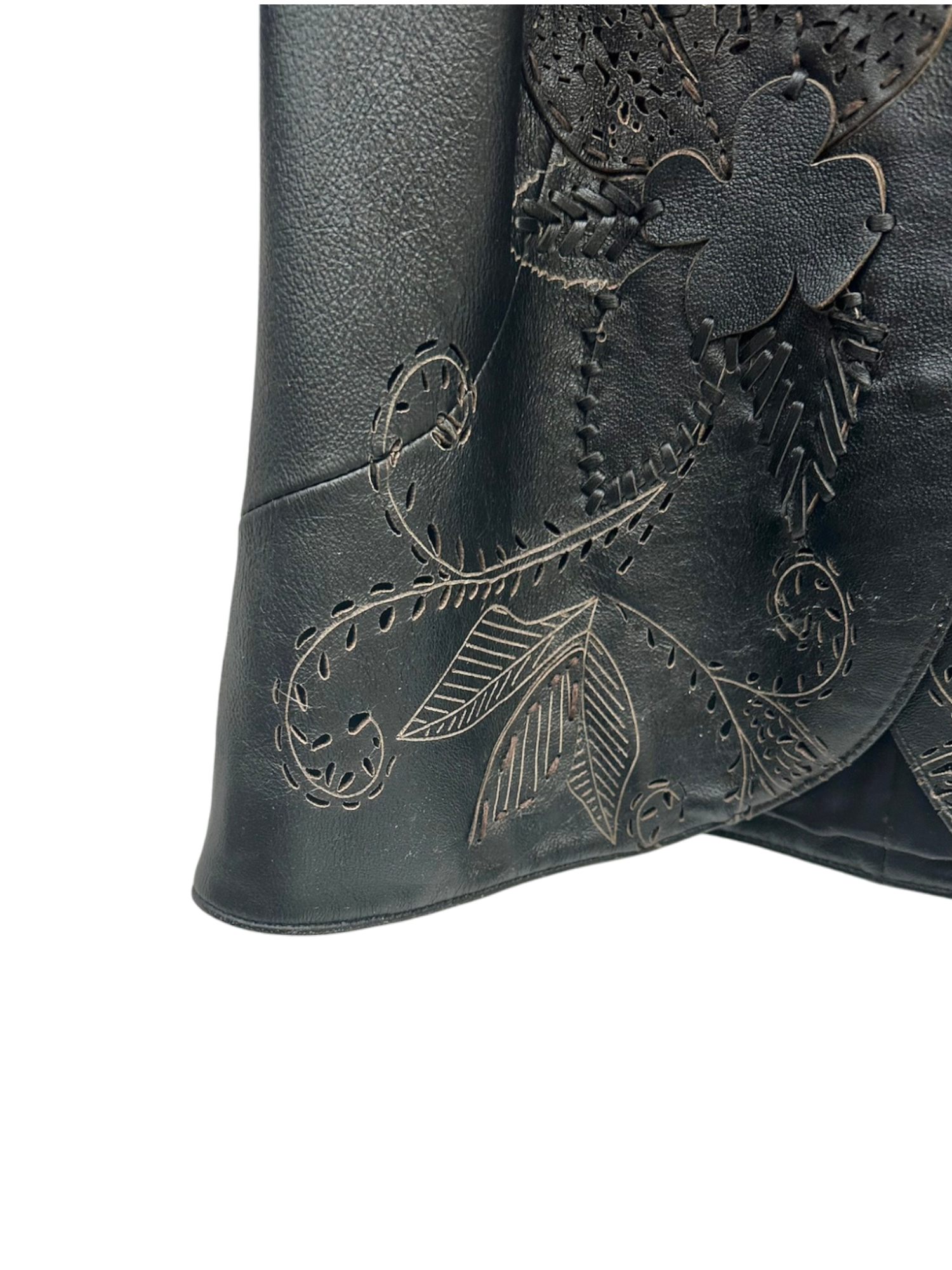 Vintage 90s Floral Cutout Leather Blazer (S)