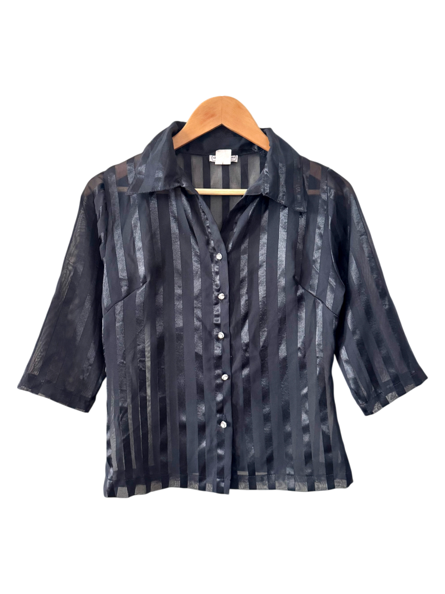 Vintage 90s Sheer Stripe Button Up Blouse (S/M)
