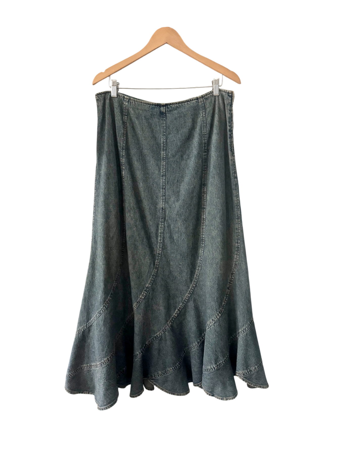 Vintage 90s Panel Seam Denim Midi Skirt (L)