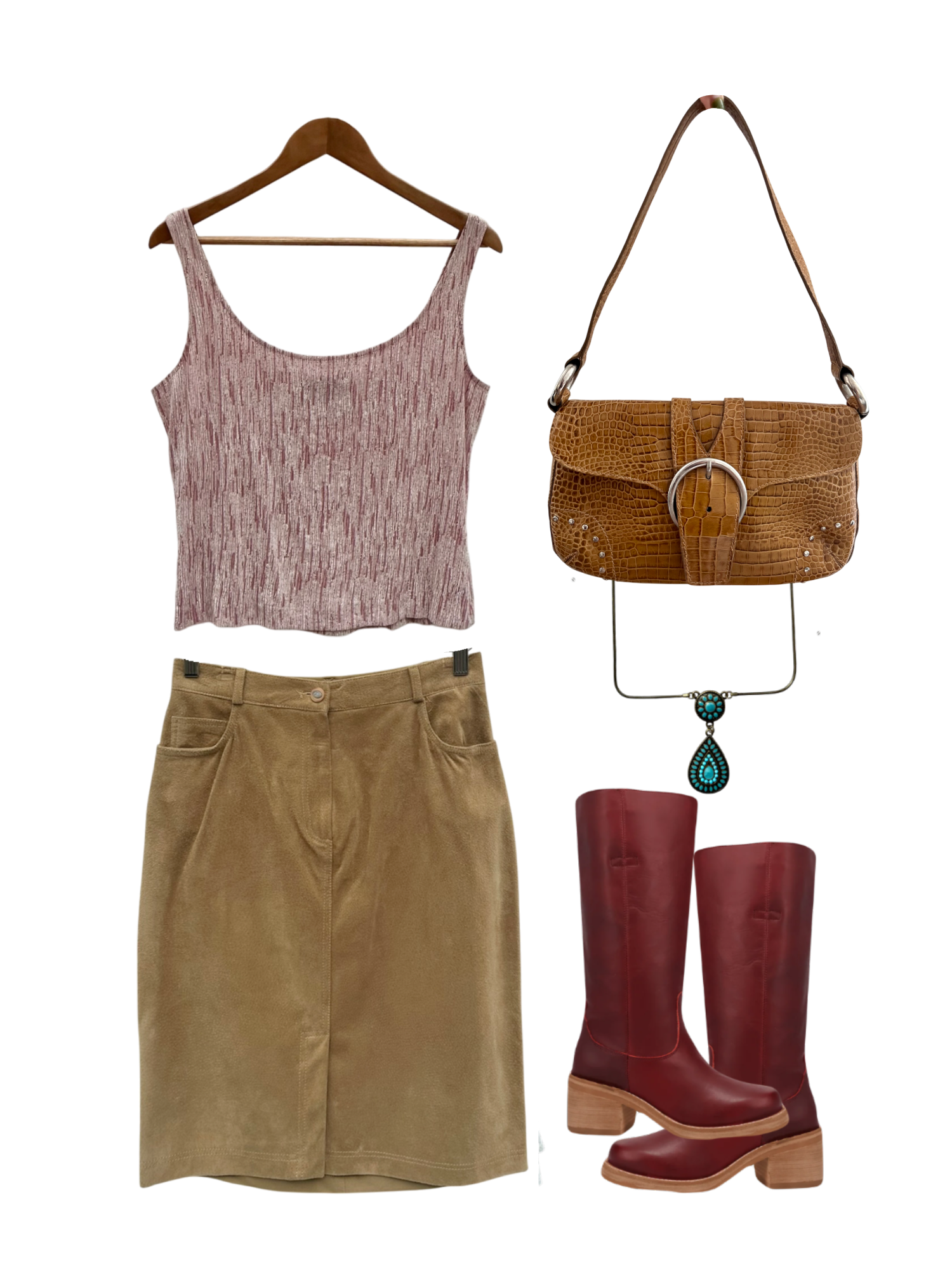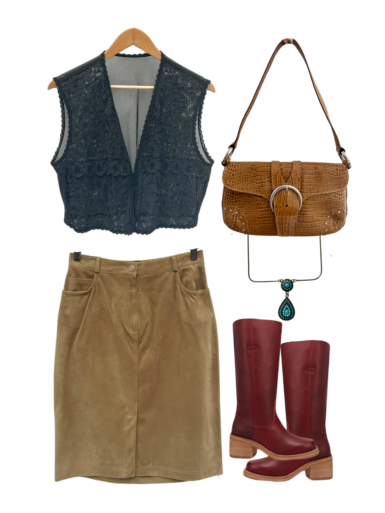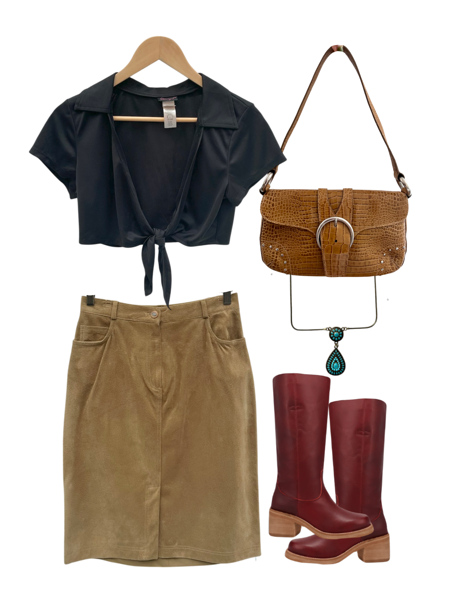 Vintage 90s Parisian Leather Midi Skirt (S/M)