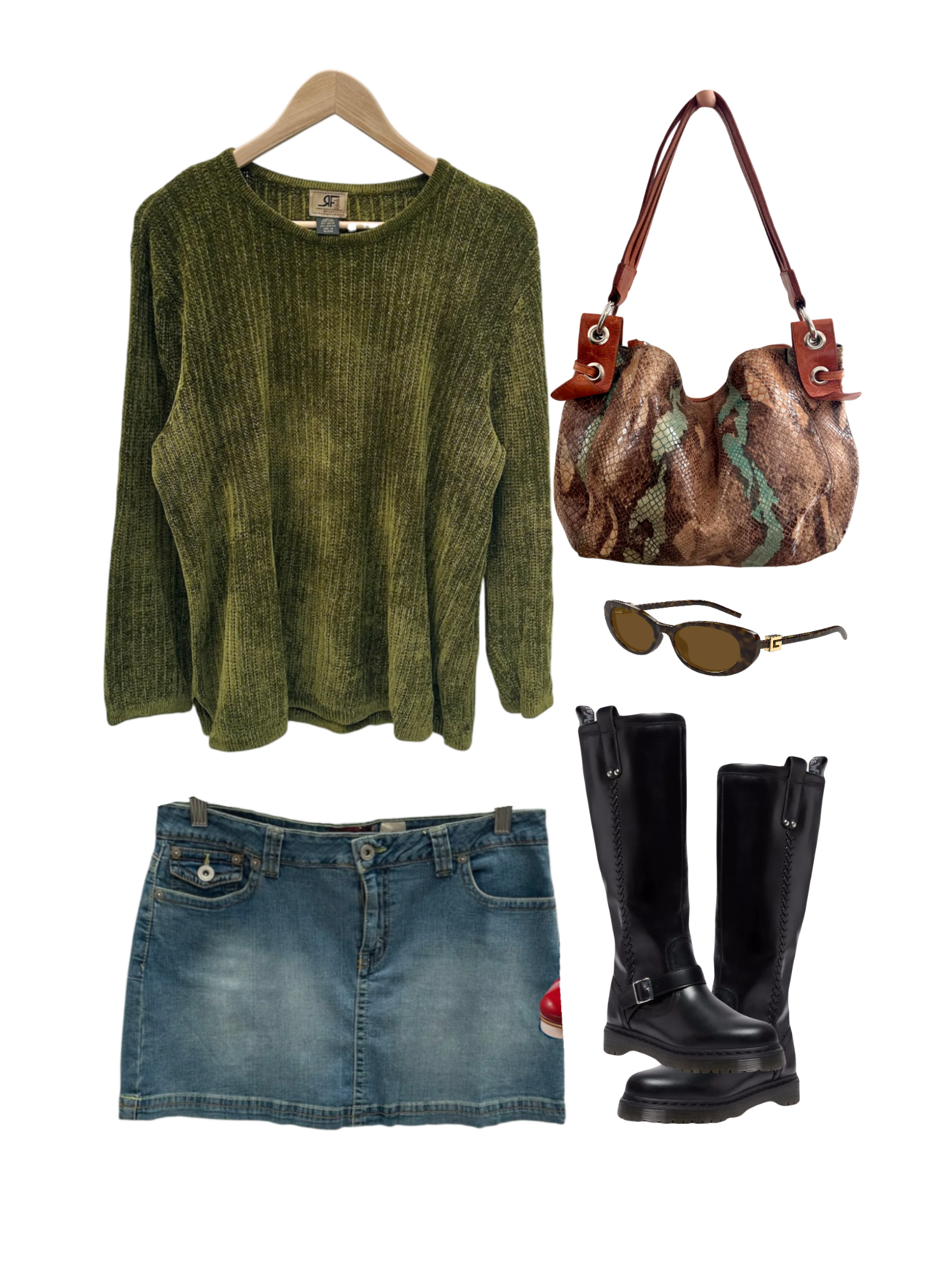 Vintage 90s Crushed Olive Cozy Knit (L)