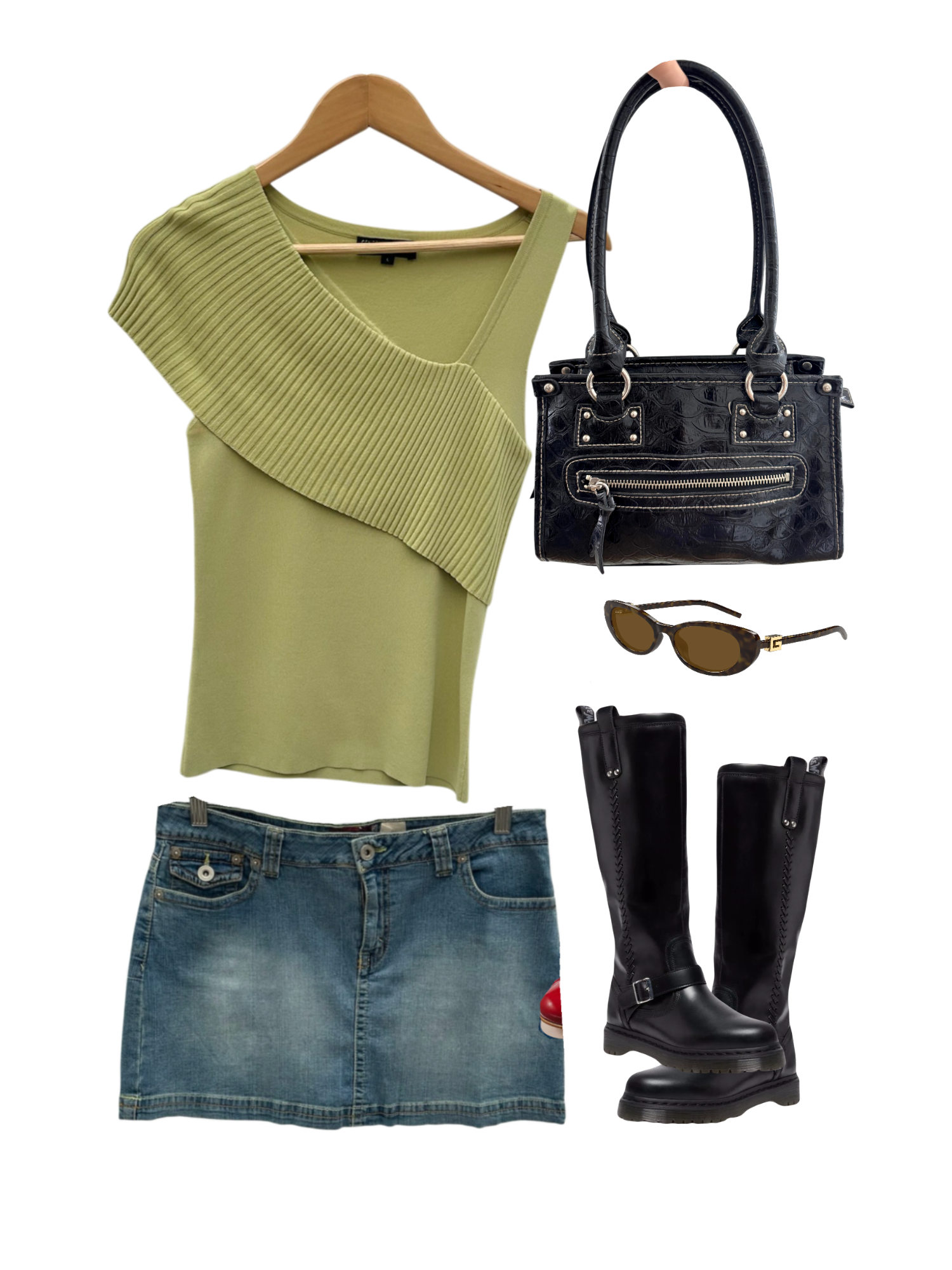 Vintage 90s Avocado Asymmetrical Knit Top (M/L)