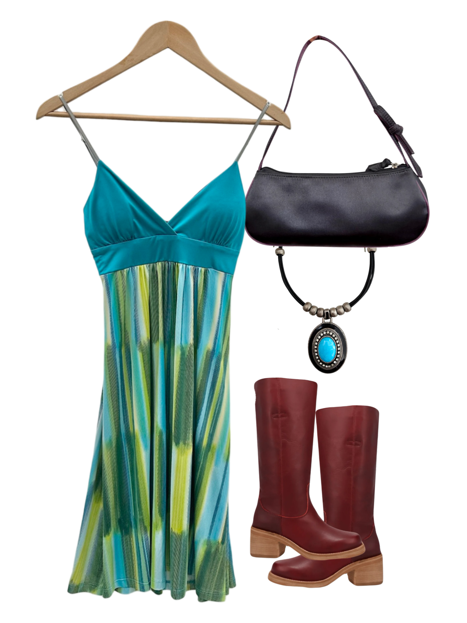 Vintage 90s Teal & Lime Ombre Slip Dress (M)
